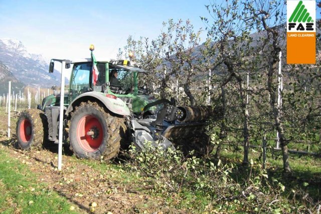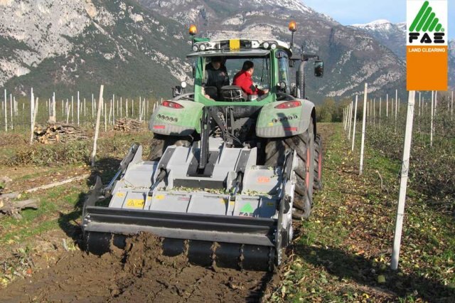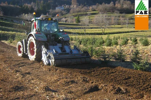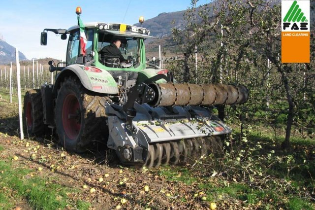 Forestry mulcher and stone crusher with mulching diameter of 40 cm and maximum working depth of 30 cm, for tractors between 180 and 250 HP.