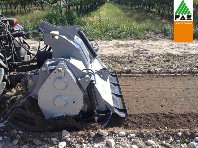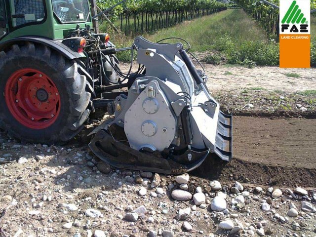The high quantity of teeth is designed to obtain the best results with rock and slabs. The hydraulic skids are designed to adjust working depth.