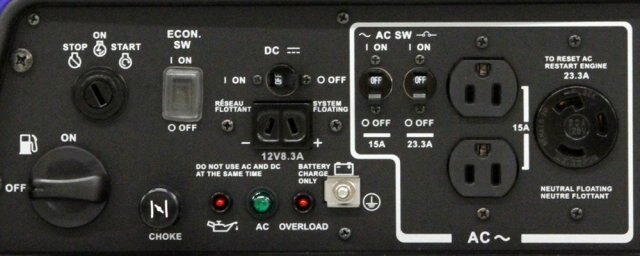 - Rated AC output for continuous use is 2,800 watts / 23.3 amps.