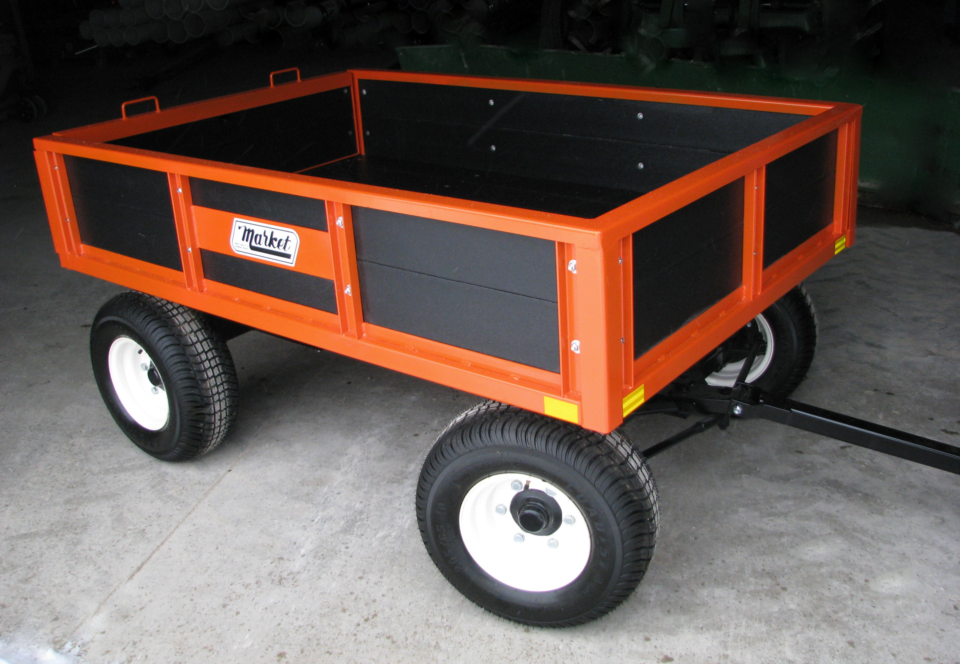 The MARKET 2 TON UTILITY WAGON features 4000 LB. hubs with 1 3/4" spindles & 20.5 x 8-10 6 ply tires.