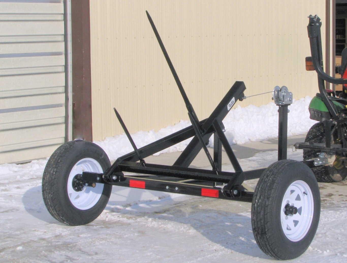 The "Bale Burro" Allows You To Move Bales With A Compact Tractor Or Pickup Truck. Available With A Manual Brake Winch Or A Hydraulic Cylinder. Standard Features Include A Heavy Duty Steel Frame, 2" Ball Coupler, 1000 Lb. Hubs & Spindles, 15" Wheels C/w Trailer Tires, A 49" Bale Fork & 2 Short Stabilizer Forks. |