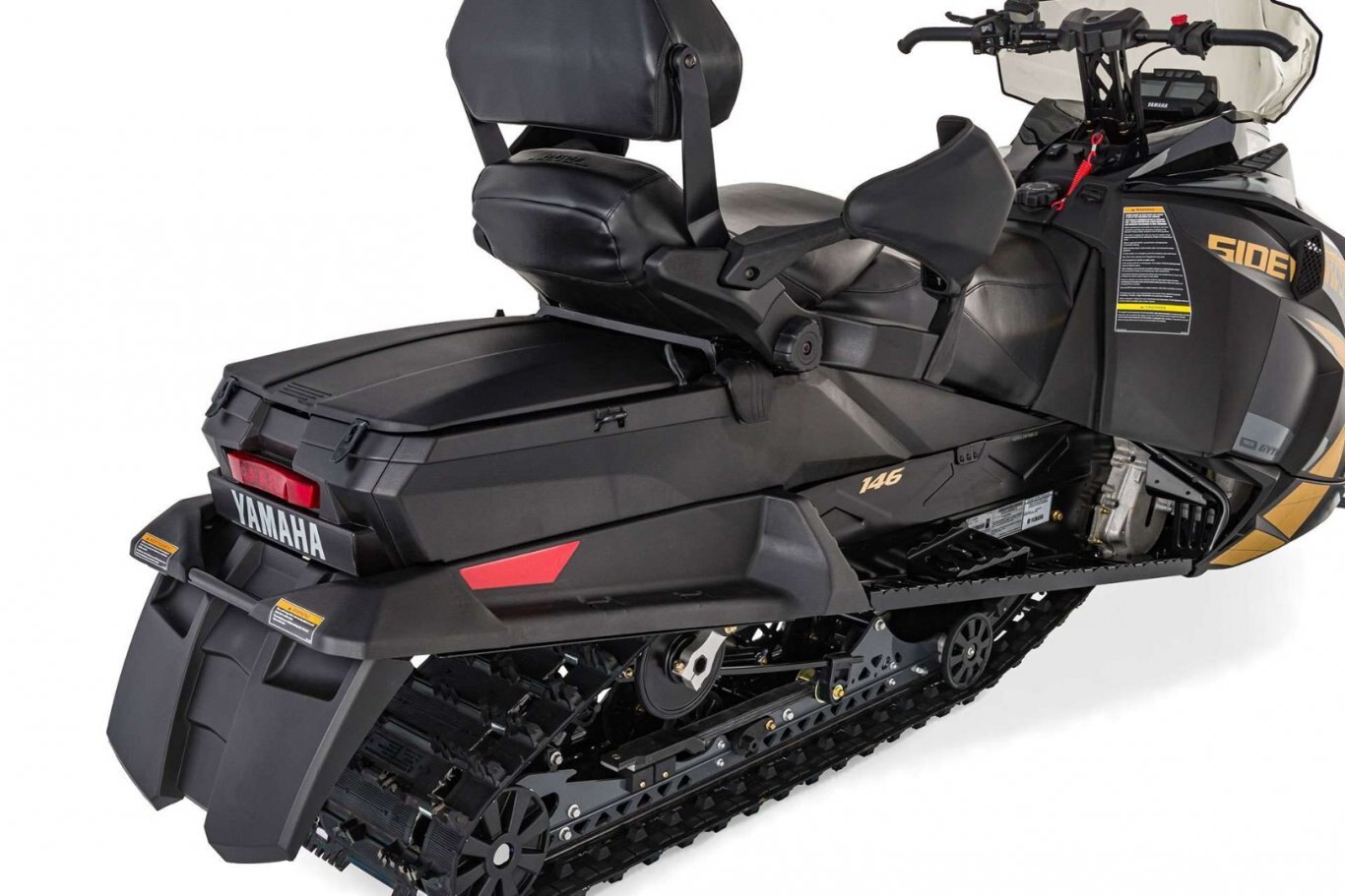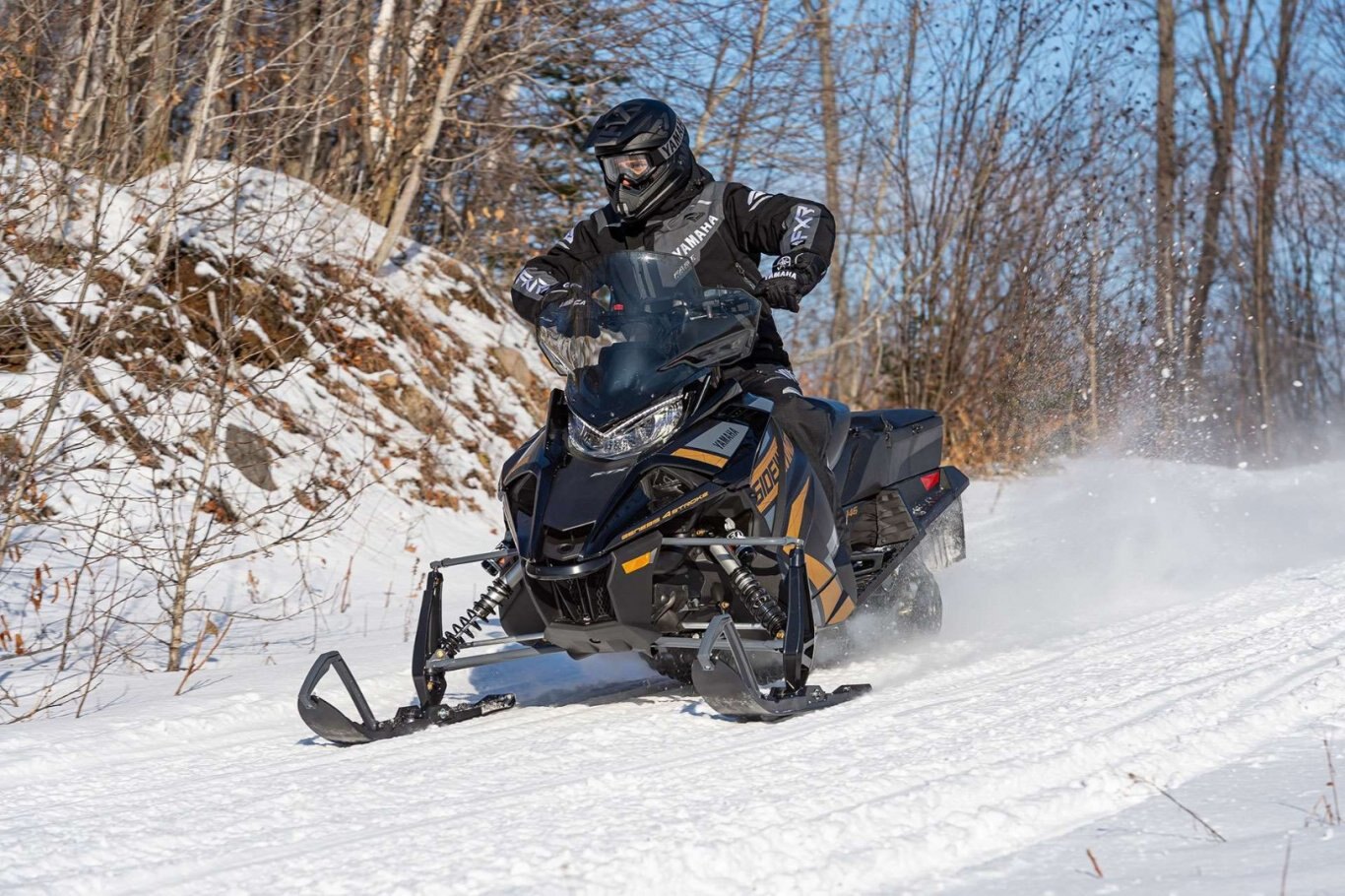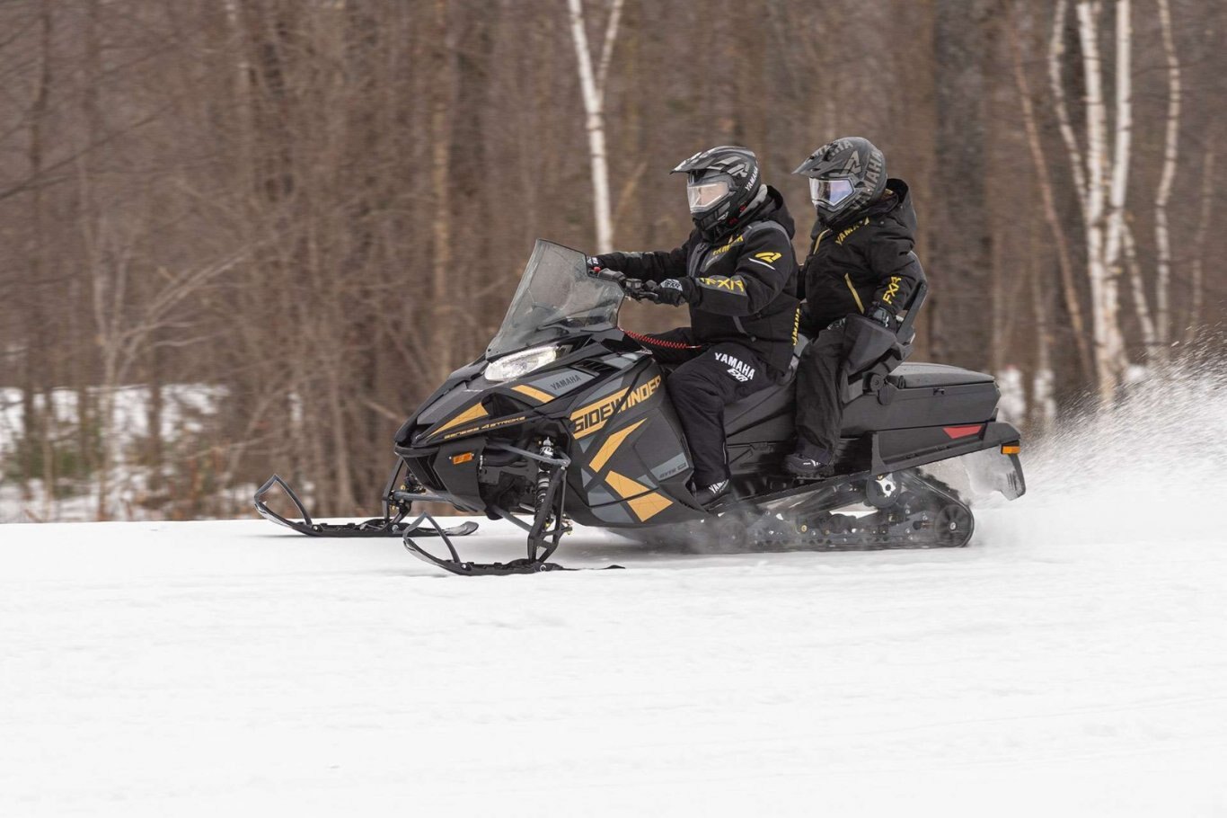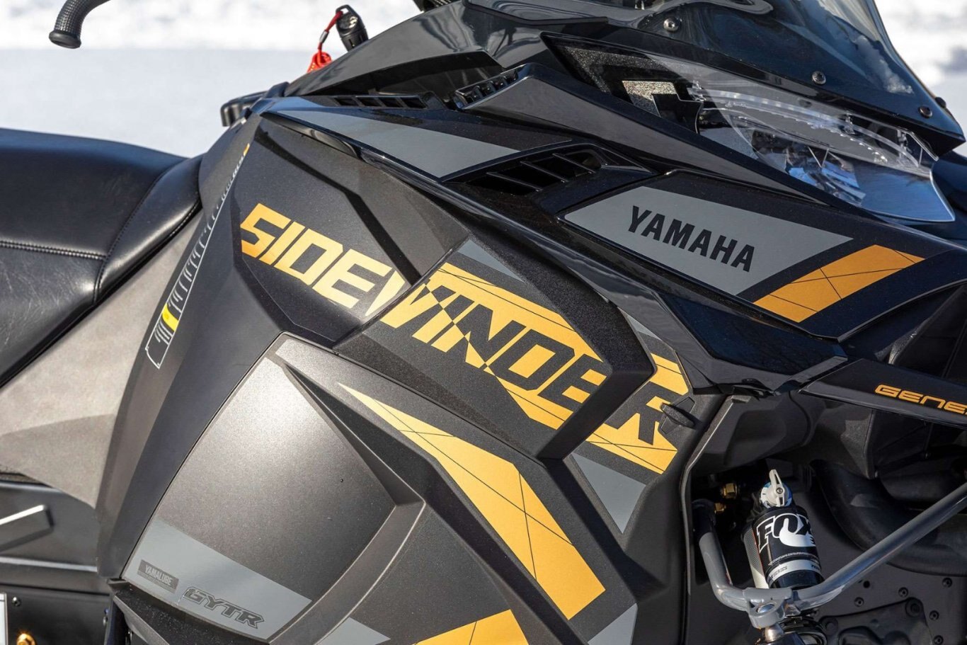 Sidewinder S-TX GT produces the most power ever offered in a Yamaha 2-up machine. It absolutely blurs the line between a sporty trail touring package and all out lake-racer. Powered by the mighty Yamaha Genesis 998 turbo, this fully featured flag-ship cruiser stands above all other passenger capable snowmobiles. Extended fuel range, storage capacity for two, plus all the comfort and warmth you'd expect from a luxury sled are a given. Rocket past your buddy's racy big twin with turbo-charged authority.
