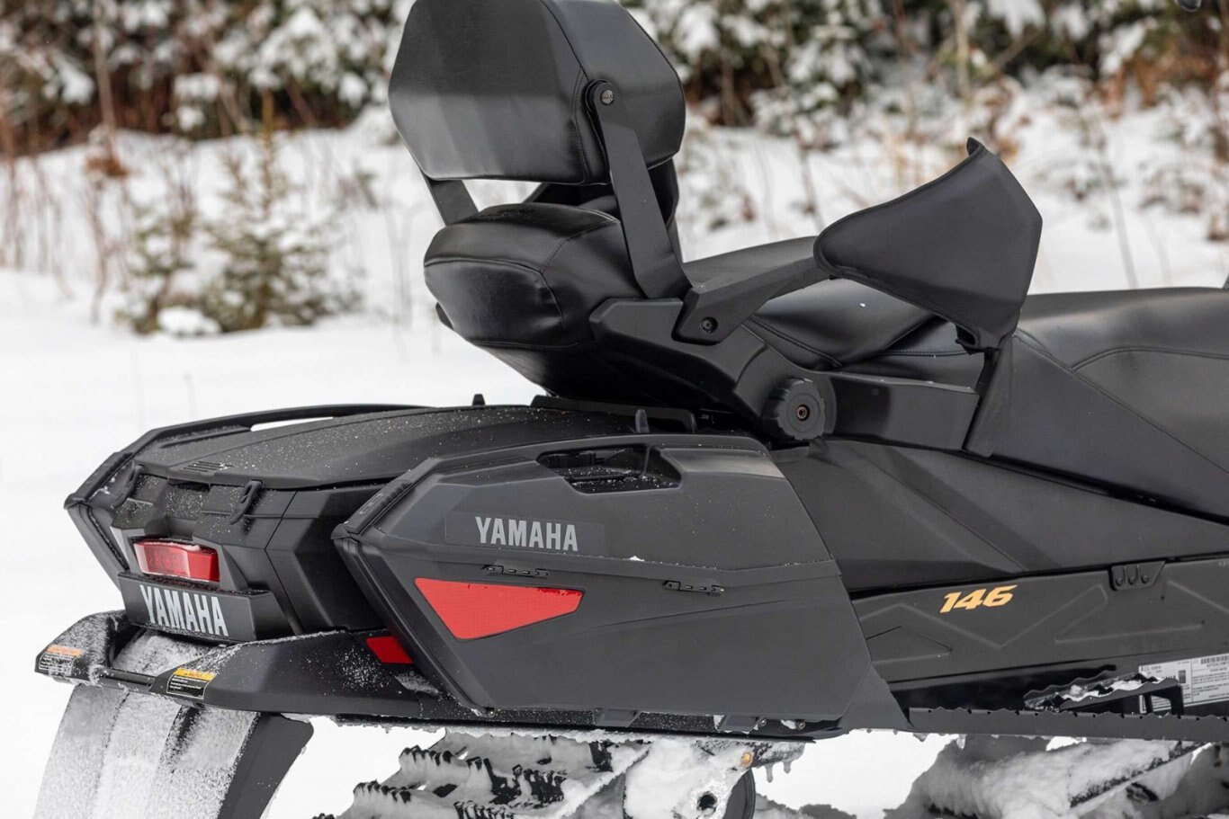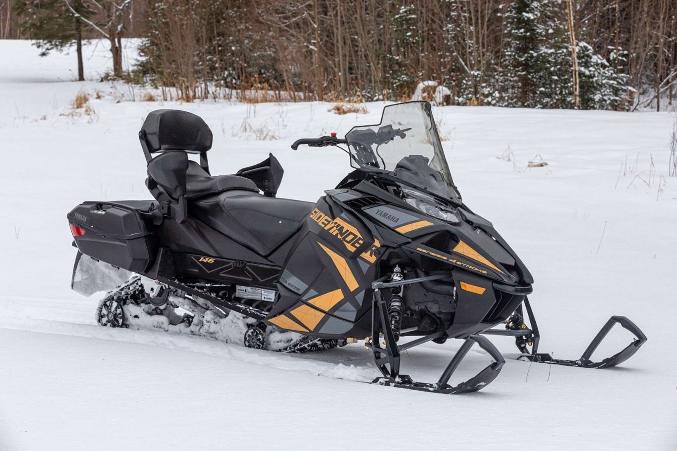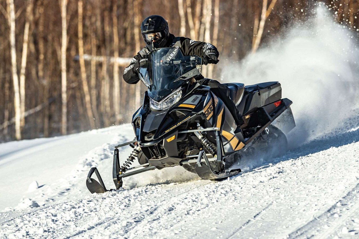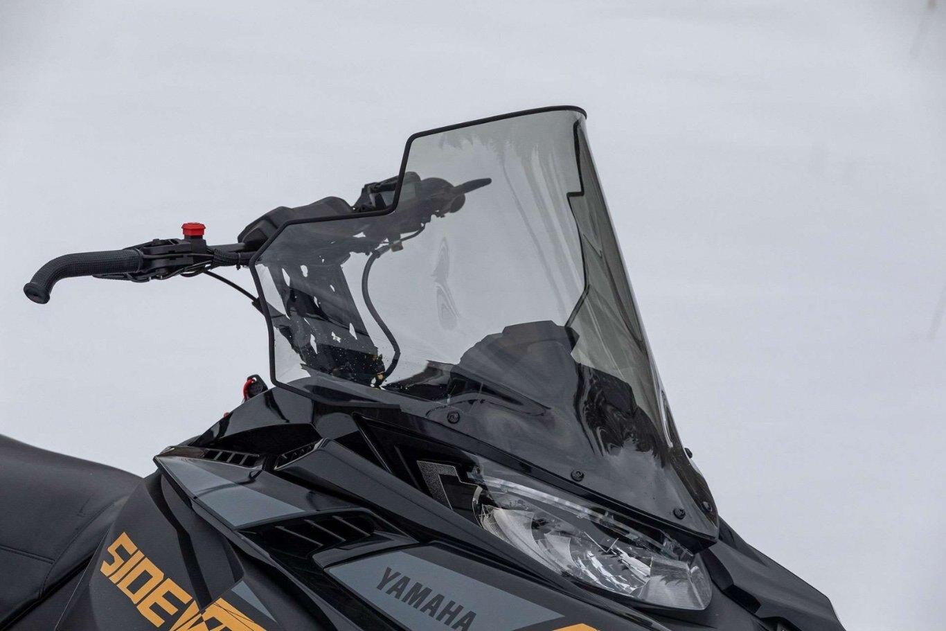 Sidewinder S-TX GT produces the most power ever offered in a Yamaha 2-up machine. It absolutely blurs the line between a sporty trail touring package and all out lake-racer. Powered by the mighty Yamaha Genesis 998 turbo, this fully featured flag-ship cruiser stands above all other passenger capable snowmobiles. Extended fuel range, storage capacity for two, plus all the comfort and warmth you'd expect from a luxury sled are a given. Rocket past your buddy's racy big twin with turbo-charged authority.
