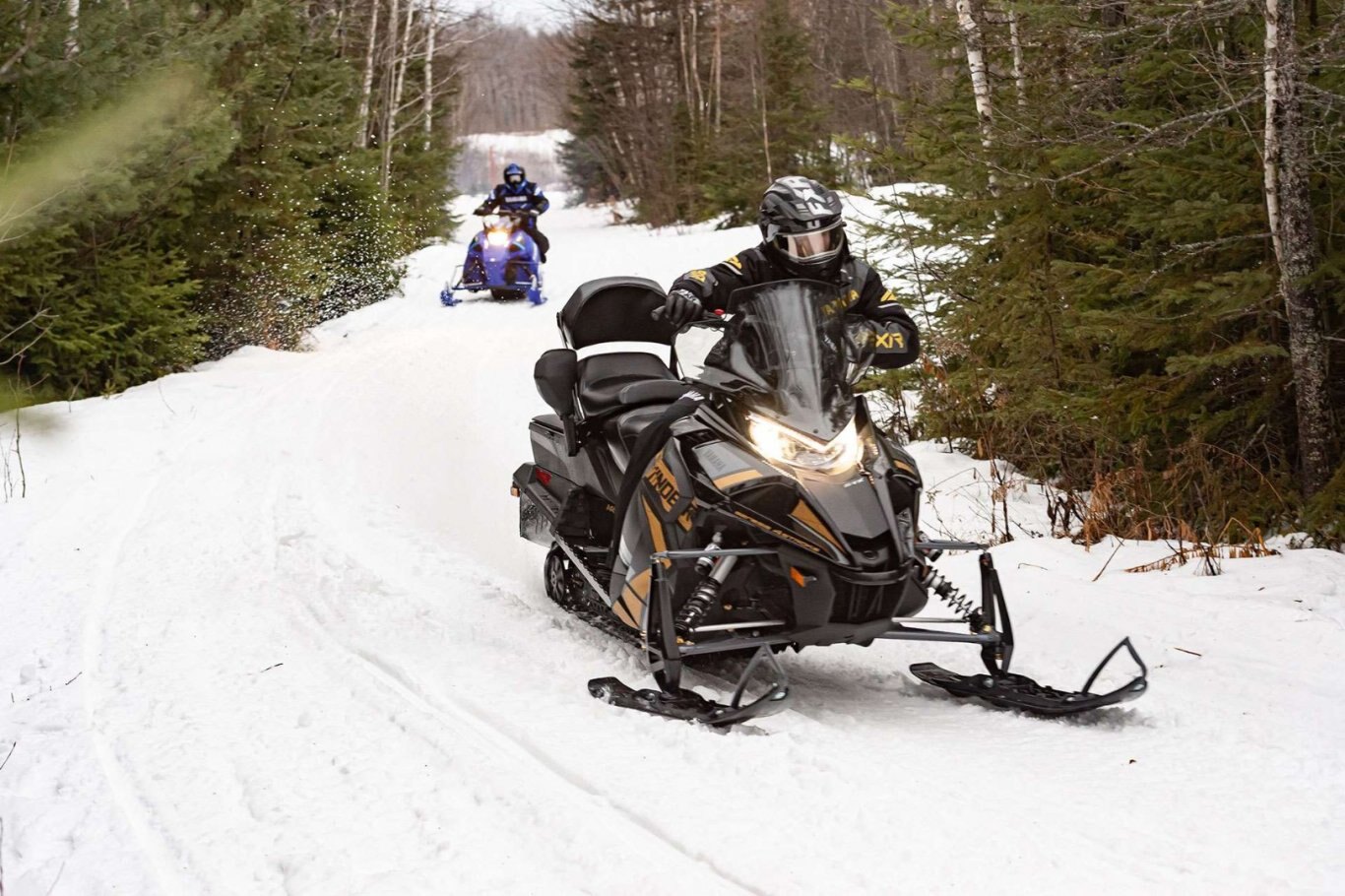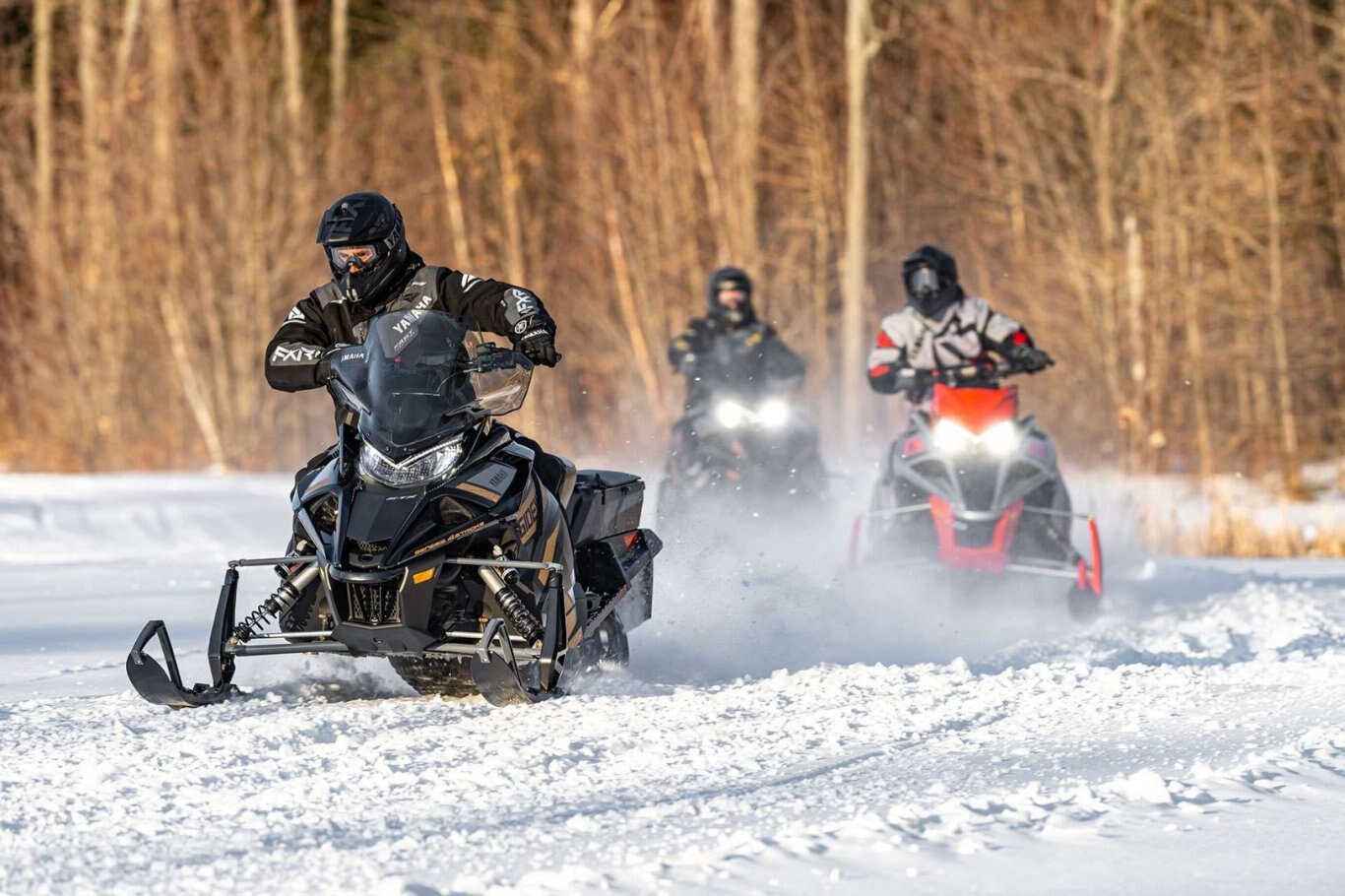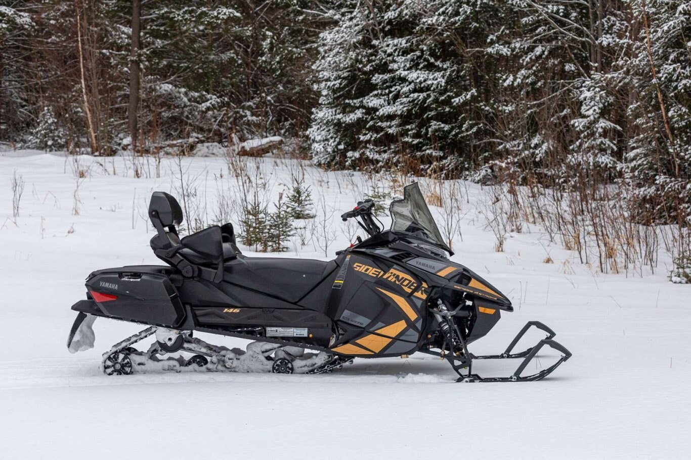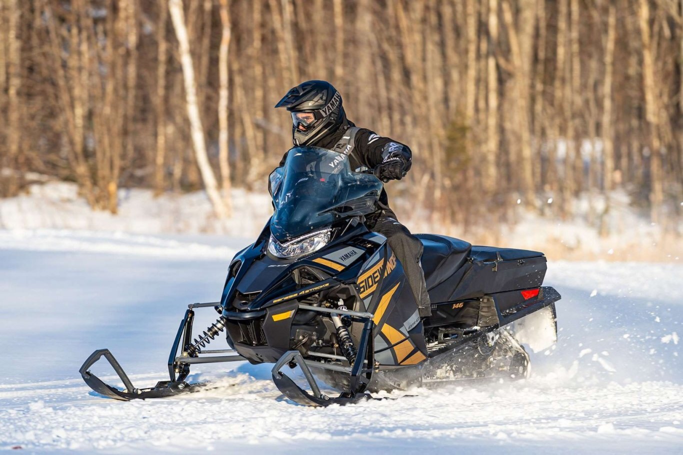 Sidewinder S-TX GT produces the most power ever offered in a Yamaha 2-up machine. It absolutely blurs the line between a sporty trail touring package and all out lake-racer. Powered by the mighty Yamaha Genesis 998 turbo, this fully featured flag-ship cruiser stands above all other passenger capable snowmobiles. Extended fuel range, storage capacity for two, plus all the comfort and warmth you'd expect from a luxury sled are a given. Rocket past your buddy's racy big twin with turbo-charged authority.