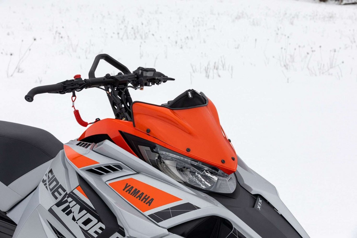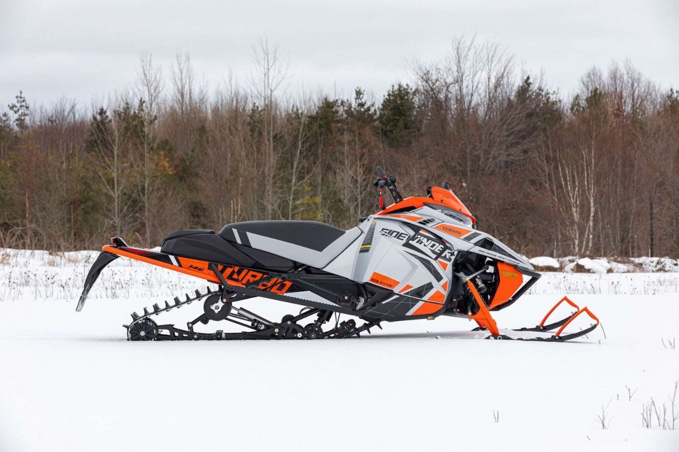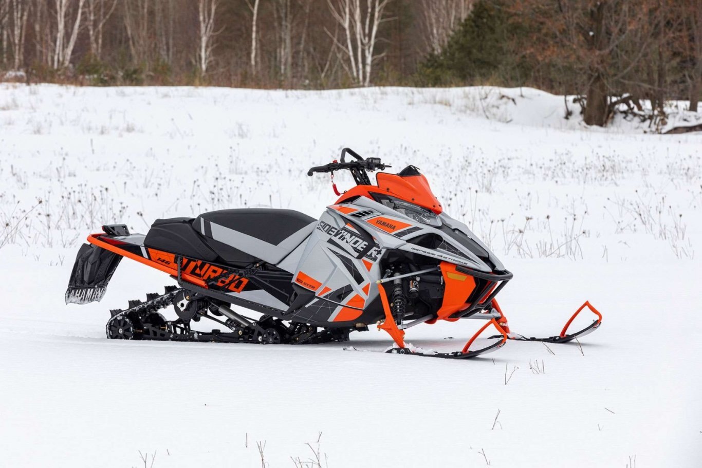 The Sidewinder X-TX SE is all about getting off-trail with its quick transfer, VersAttak 146 rear suspension and 2.00" deep-lug Camso track. The front end sports a narrower 40" ski stance held up by wide Yamaha Mountain skis. The tunnel and steering system is based on the SR-M Mountain chassis complemented with a light weight mountain seat, tapered foot boards and Stealth controls. Top-shelf Fox® Zero QS3 shocks are found up front to accommodate a wide range of terrain and riding styles. The Genesis Turbo adds a power packed punch of fun to any outing.