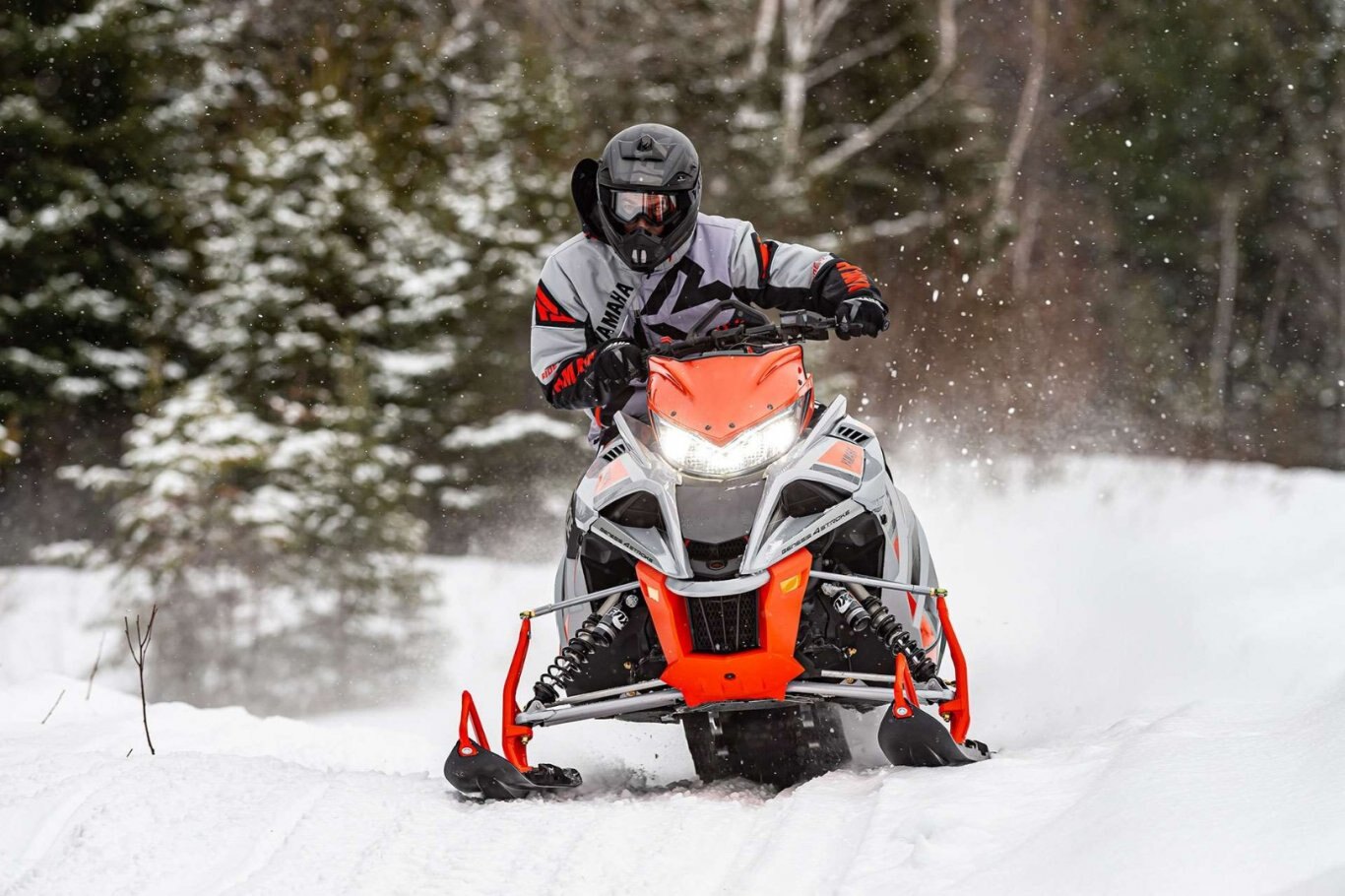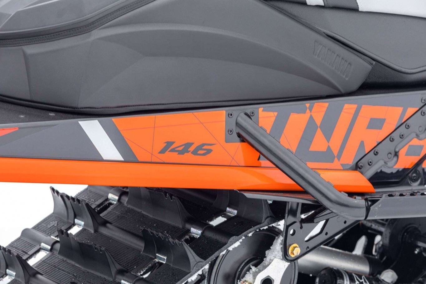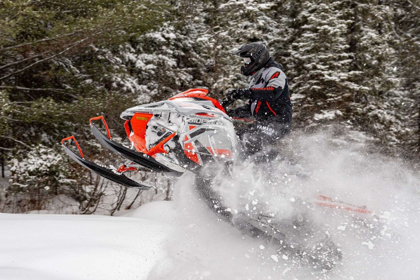 The Sidewinder X-TX SE is all about getting off-trail with its quick transfer, VersAttak 146 rear suspension and 2.00" deep-lug Camso track. The front end sports a narrower 40" ski stance held up by wide Yamaha Mountain skis. The tunnel and steering system is based on the SR-M Mountain chassis complemented with a light weight mountain seat, tapered foot boards and Stealth controls. Top-shelf Fox® Zero QS3 shocks are found up front to accommodate a wide range of terrain and riding styles. The Genesis Turbo adds a power packed punch of fun to any outing.