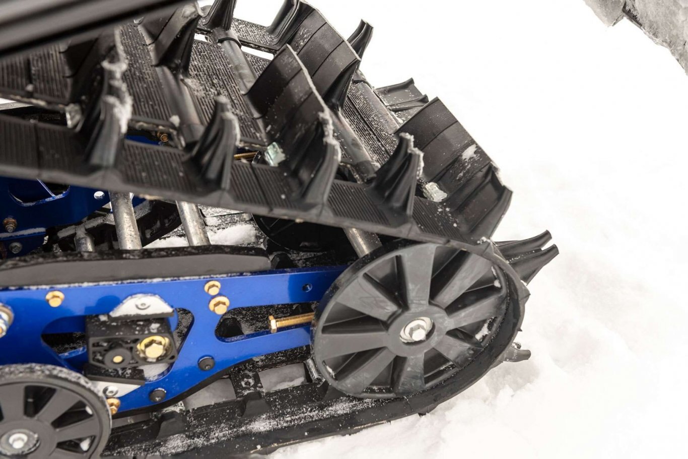 This 153 inch long Power Claw track uses 2.25-inch lugs in a 3.0 pitch configuration. The forward-curved-edge lugs are beneficial when the powder is heavier, and helps to keep things hooked up when pulling a heavy load or breaking trail. The 153 inch length coupled with the articulated skid-frame gets it done regardless of the task at hand.