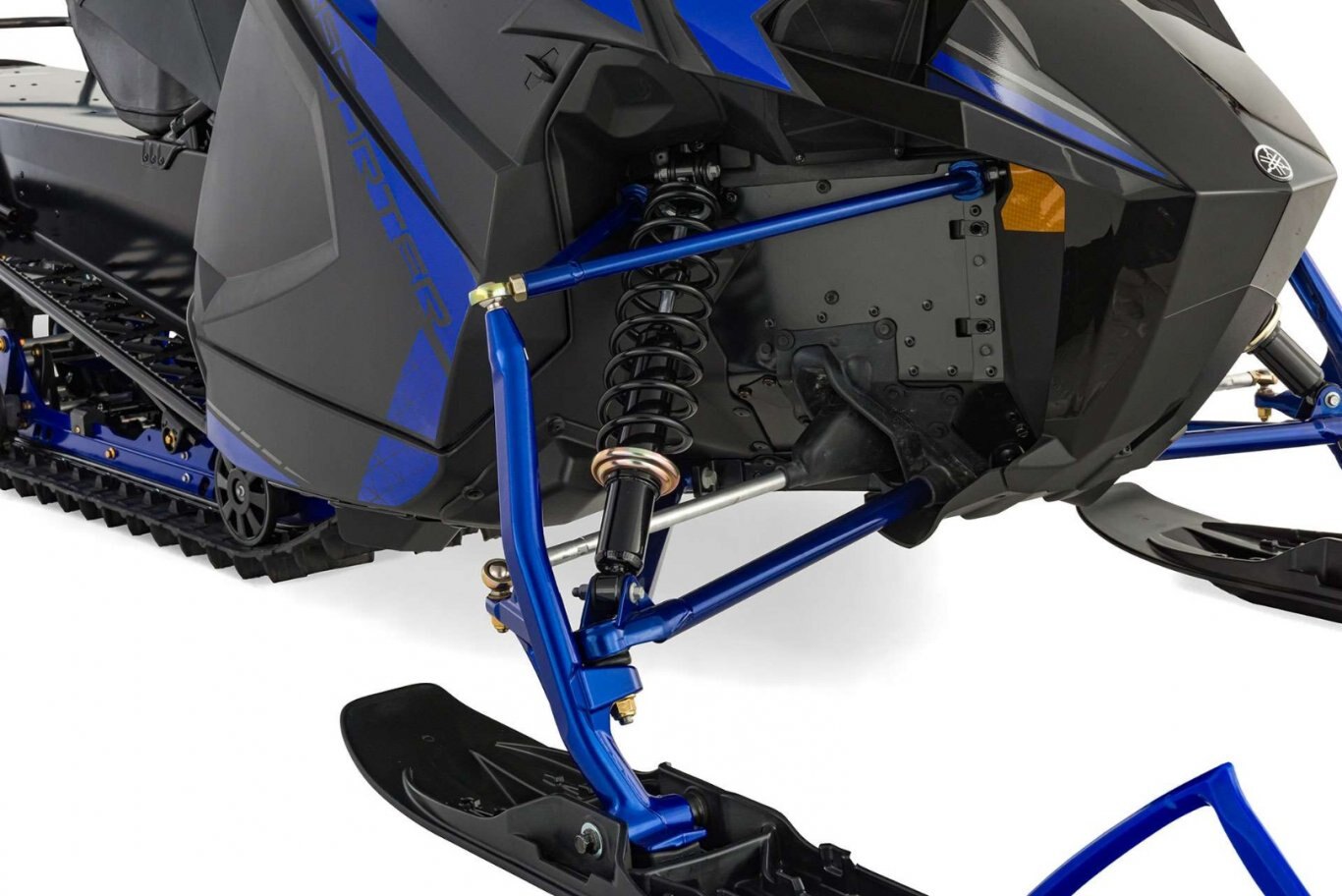 Derived from the sleek SRV-M Front Suspension, this new lightweight design is ultra compact to reduce unwanted spindle and suspension component drag in deep snow. The neutral stance allows for great maneuverability in tight terrain along with predictable manners on the trail. The lightweight, forged aluminum spindles join the widely spaced upper and lower control arms producing a large caster angle for tight turning and ease of steering. .