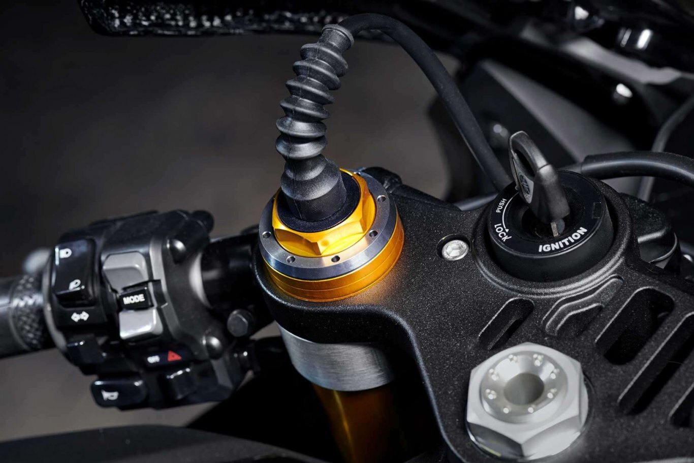 - features a centrally-located intake duct between the LED headlights, delivering cool, force-fed air which pressures the airbox and increases power output at higher speeds