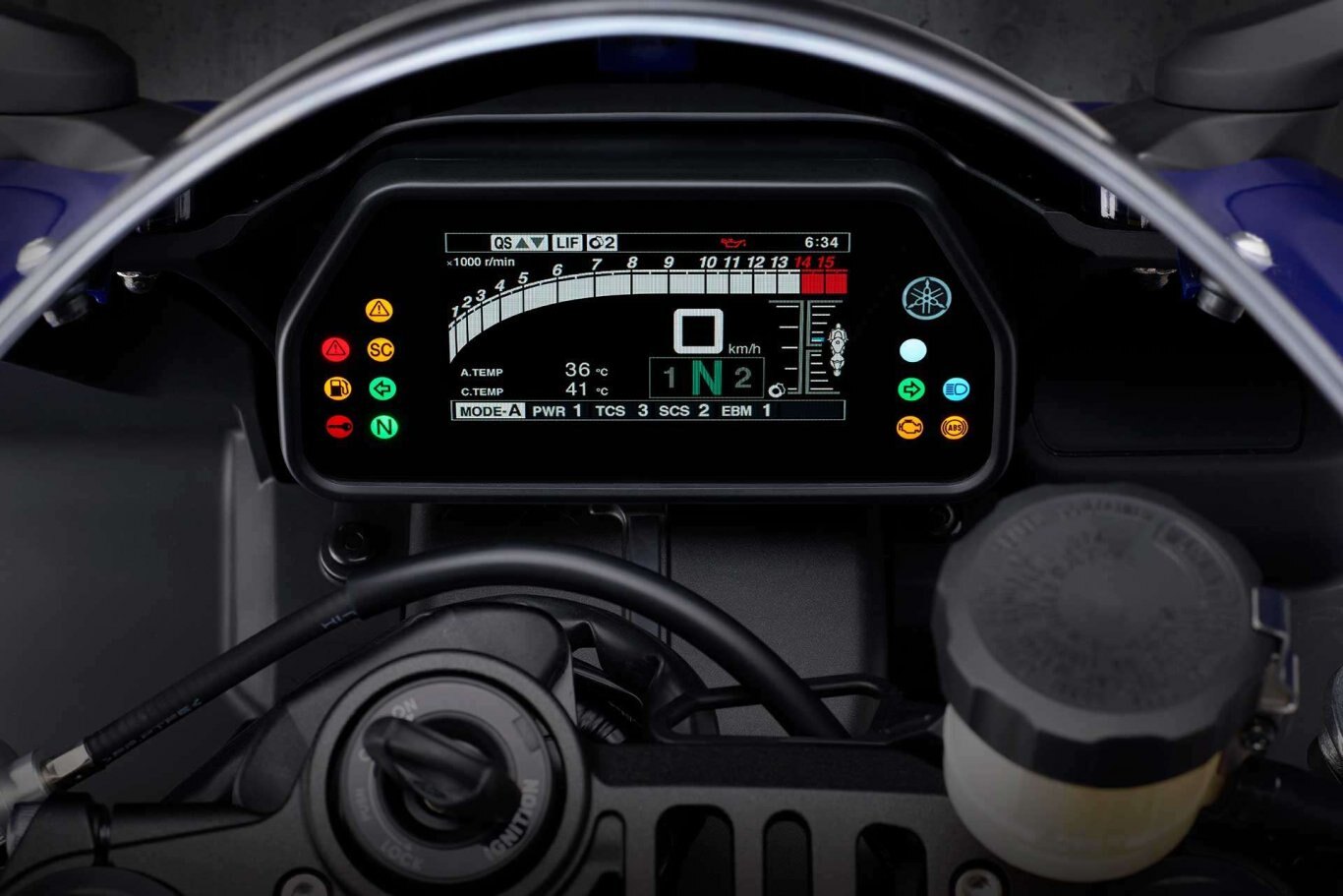 - PWR: Power Delivery Modeis Yamaha's variable throttle control, which controls the throttle valve opening speed, enabling the rider to adjust performance characteristics of the engine based on riding preferences or conditions. There are four power settings available from an enhanced race setting to a slippery condition mode with softer power characteristics.