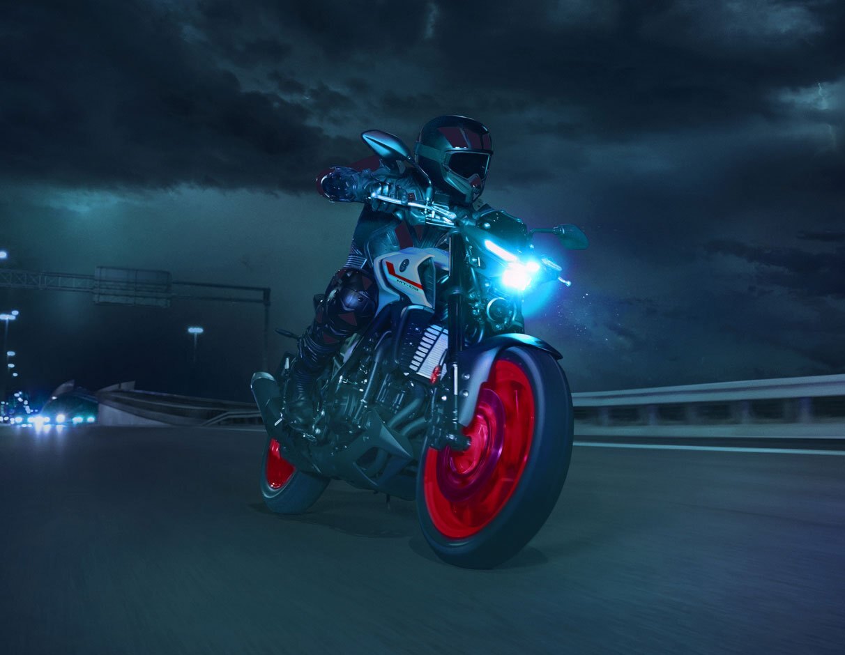 Yamaha's MT bikes are instantly recognizable thanks to their aggressive and powerful design. A sculpted fuel tank cover is designed to fit snugly with the rider, while the lightweight air scoops enhance the look and feel of the mass-forward body design and highlight the dynamic MT family look.