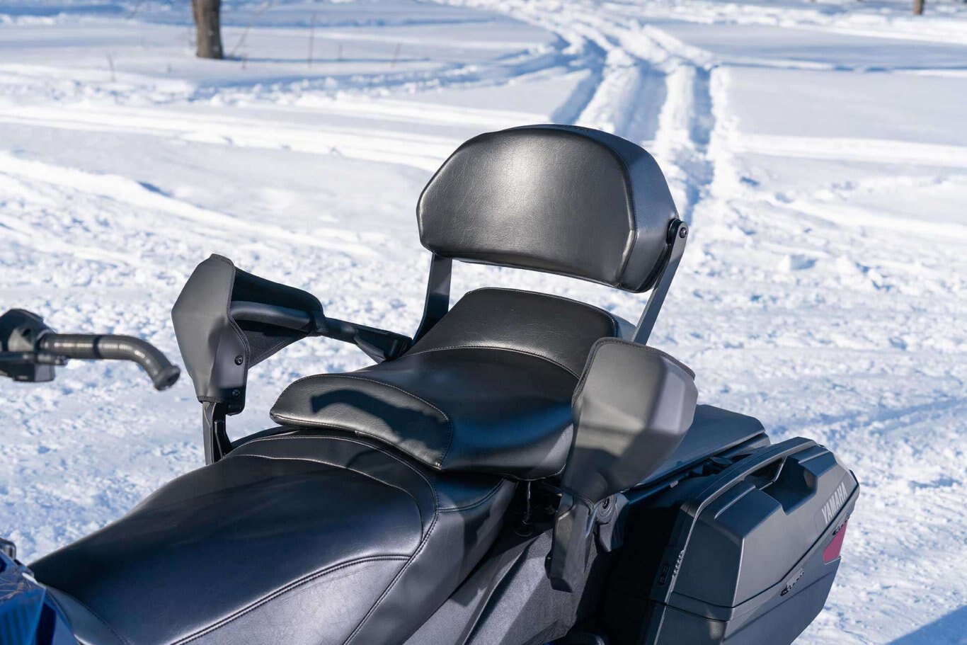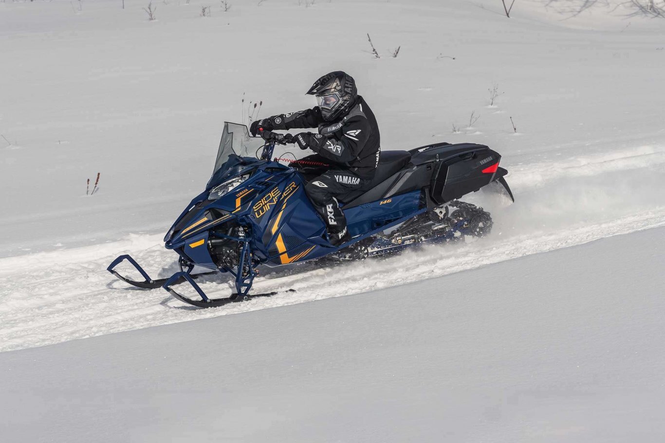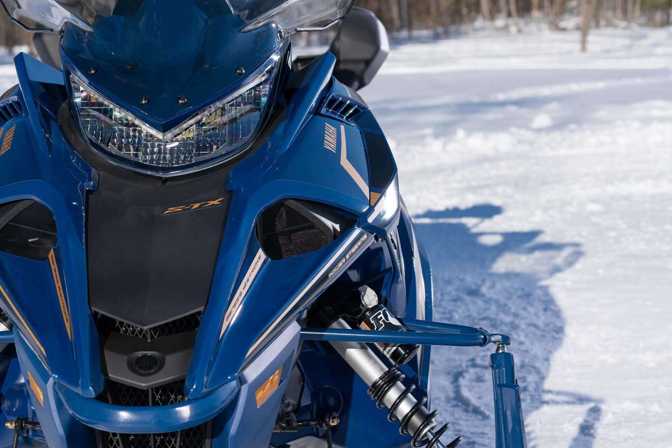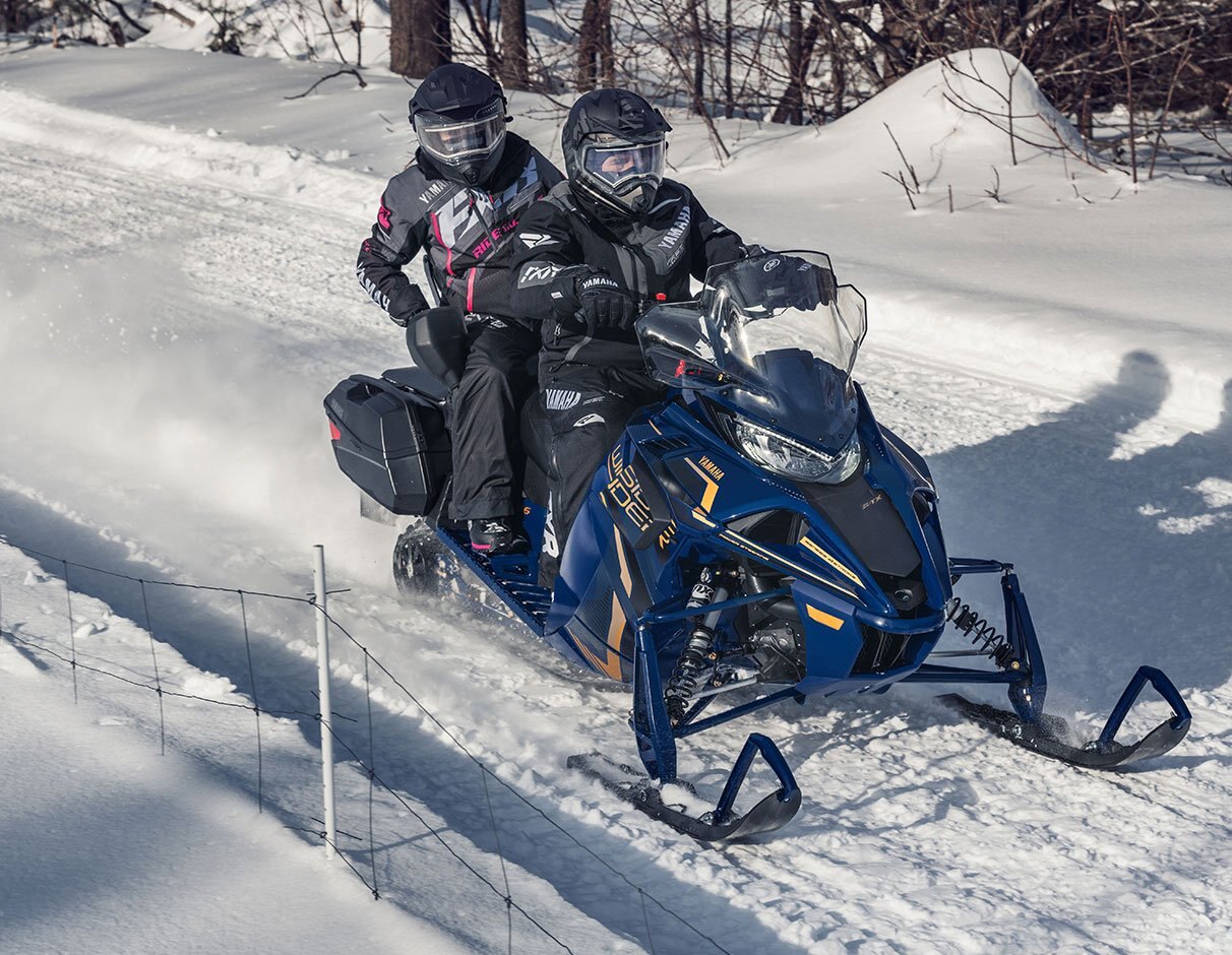 | Sidewinder S-TX GT EPS produces the most power ever offered in a Yamaha 2-up machine. It is simply unrivaled in its overall performance blurring the line between a sporty trail touring package and all out lake-racer. Powered by the mighty Yamaha Genesis 998 turbo, this fully featured flag-ship cruiser stands above all other passenger capable snowmobiles. The addition of Yamaha Electric Power Steering (EPS) reduces rider fatigue. Along with its dual tanks providing extended fuel range, storage capacity for two, plus all the comfort and warmth you'd expect from a luxury sled there is nothing else quite like it on snow. |