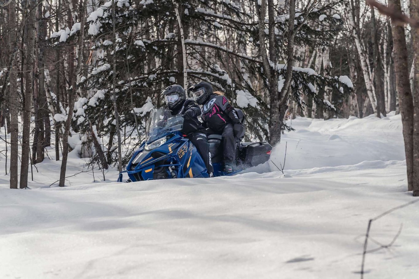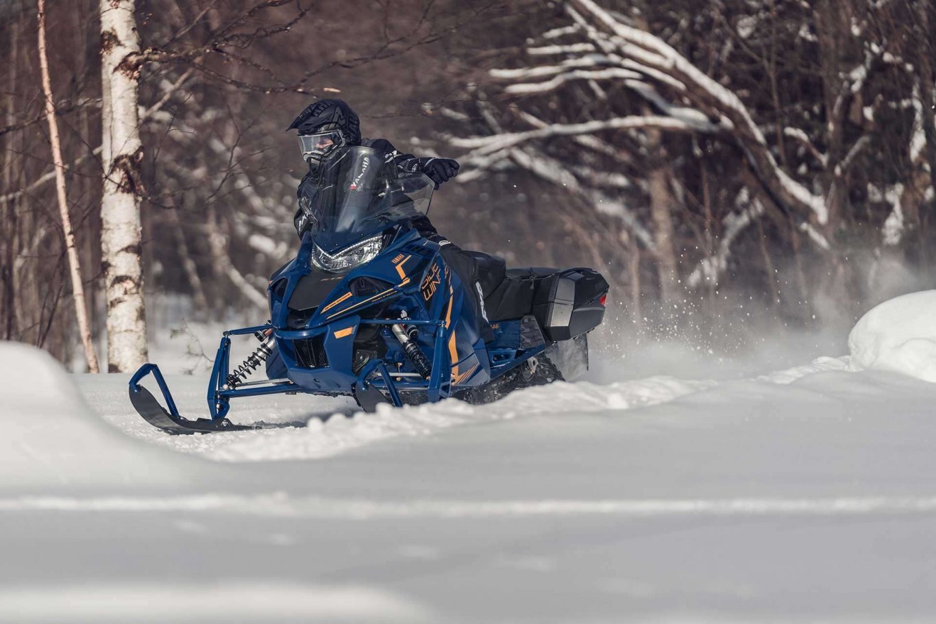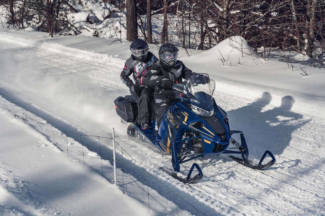 | Sidewinder S-TX GT EPS produces the most power ever offered in a Yamaha 2-up machine. It is simply unrivaled in its overall performance blurring the line between a sporty trail touring package and all out lake-racer. Powered by the mighty Yamaha Genesis 998 turbo, this fully featured flag-ship cruiser stands above all other passenger capable snowmobiles. The addition of Yamaha Electric Power Steering (EPS) reduces rider fatigue. Along with its dual tanks providing extended fuel range, storage capacity for two, plus all the comfort and warmth you'd expect from a luxury sled there is nothing else quite like it on snow. |