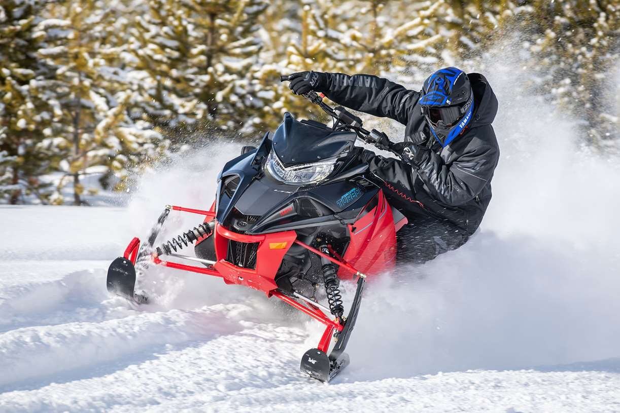 The Sidewinder L-TX SE has all the trail performance and capabilities found in our LE models but at a lower price point. The ARCS front suspension with Fox® RC adjustable shocks leads the charge with longer, lightweight forged spindles and optimized geometry. A 137" Ripsaw II track wrapped around the free-arm, coupled SRV rear suspension with HPG shocks hooks up the industry's most powerful engine. The race bred chassis holds you forward, at the ready to meet anything the trail throws your way. Appearance is also racy and aggressive with a minimal, - shorty - wind deflector and hot, high impact graphics.