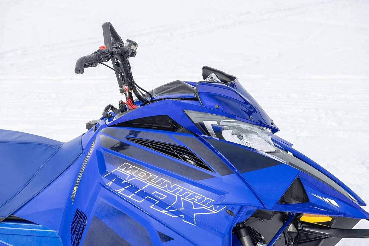 The Mountain Max 800 LE SL 154 is a no-holds-barred deep-snow weapon. It features a full 3-inch lugged track and offers significantly less weight with the elimination of the electric-start motor and battery. Other features include a shorter seat and fuel tank to aid rider mobility along with its proven 36-inch stance mountain front suspension and industry-leading single-beam skid frame for unparalleled handling ability.