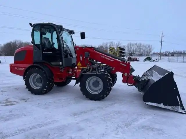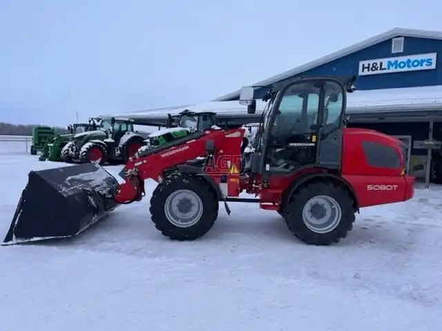 Weidemann 5080T telescopic loader, features 134hp perkins engine. 2 door cabin with heater and fan. All wheel drive with diff- lock and 550/45 R22.5 tires. Also features a tiltable cab for easier service and maintenance. Call for more info.