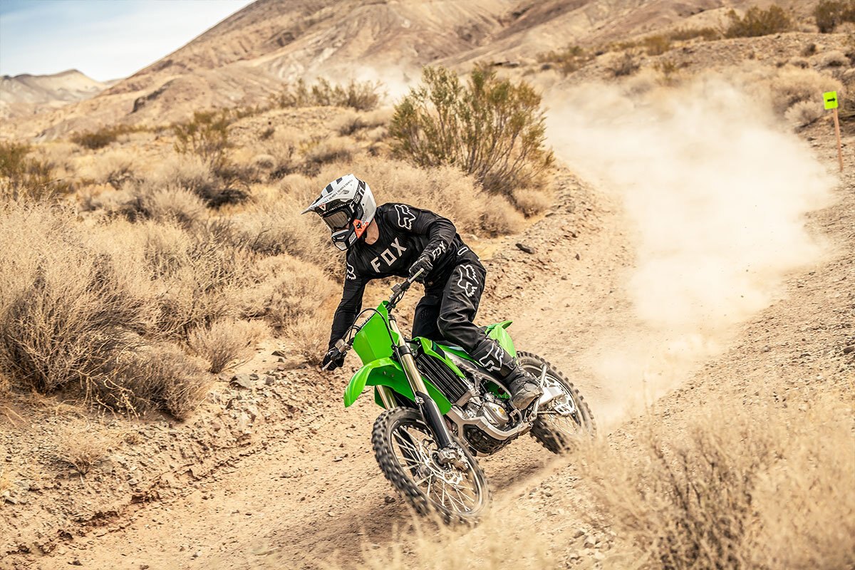 | When it comes to KX motorcycles, winning runs in the family. The cross-country KX450X motorcycle is powered by technology that hails from a legacy of champions and tuned to take on the toughest terrain. Get the off-road edge on the bike built to ride ahead of the rest. |