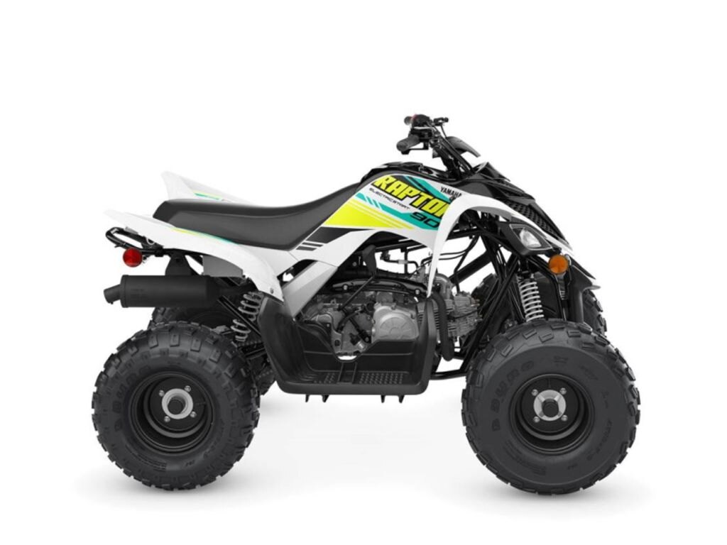 The Raptor 90\'s sporty styling and ease-of-use is the best way to nurture the passion that drives your young rider. Featuring reverse, adjustable speed limiters, electric start, and fully automatic CVT and legendary Raptor styling, this youth ATV is pure fun for riders age 10 and up.