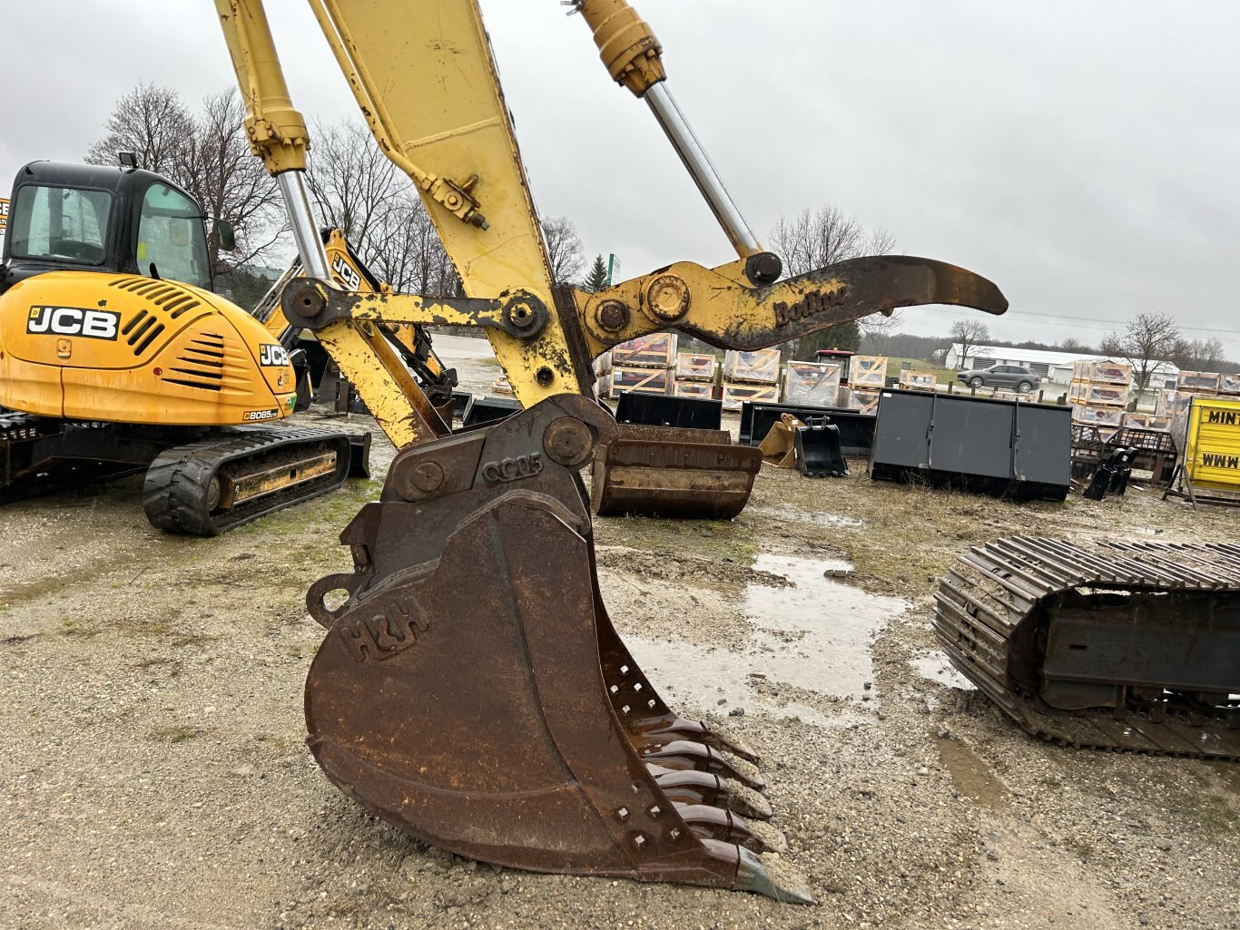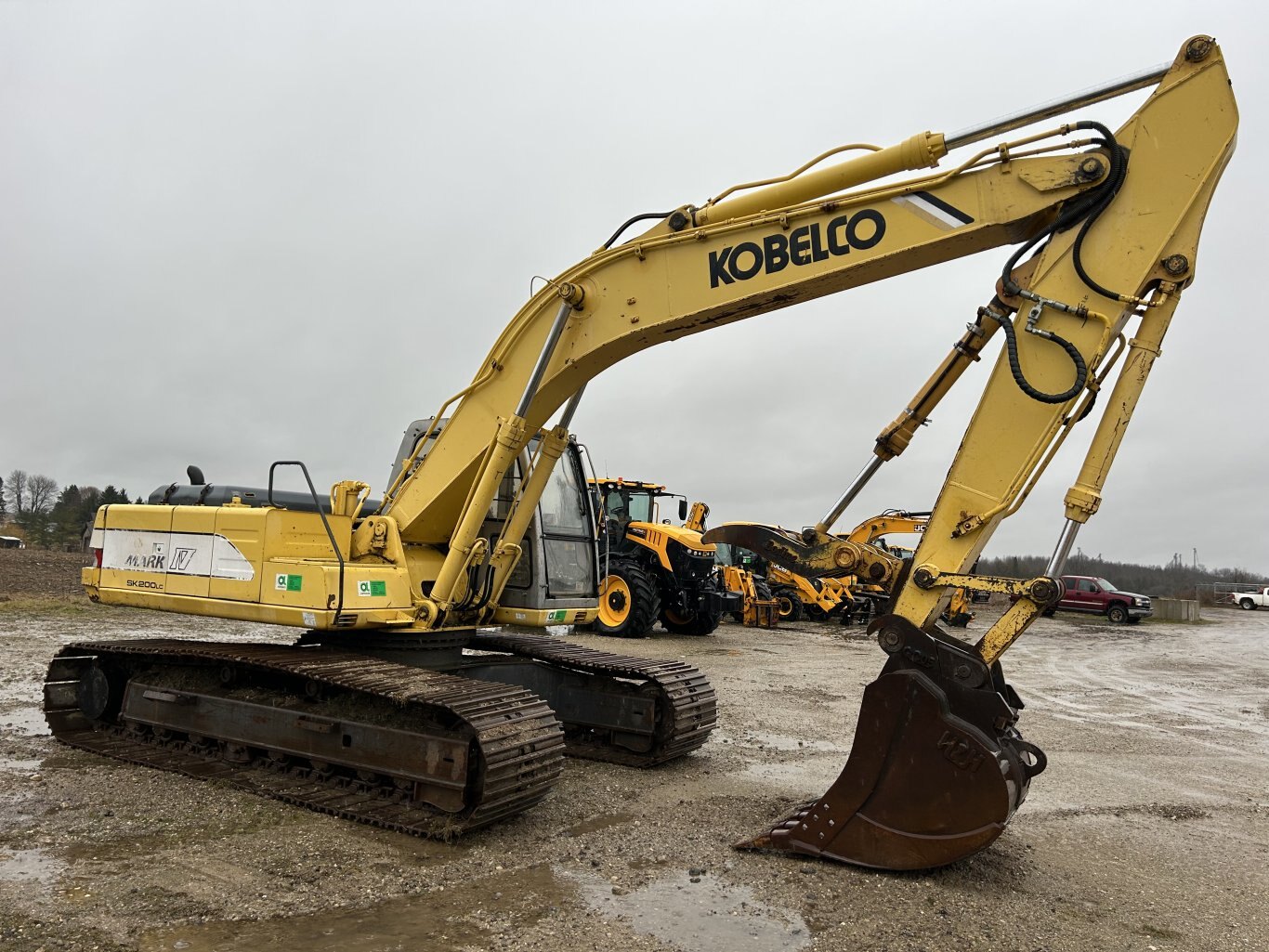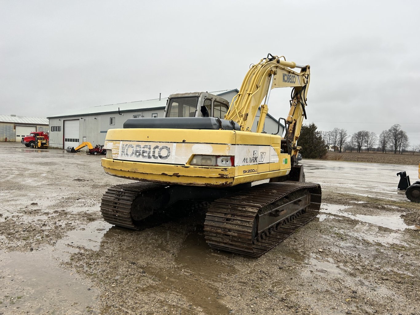 KOBELCO SK200 Mark 4 Excavator. 20T 148hp Machine w/ 45000lb Operating Weight 111 gal/min Hydraulic Pump Flow, 11rpm Swing Speed and 24" Track Width. Unit Equipped w/ Aux Hydraulic Connection, Wedge Coupler, Hydraulic Thumb, Std 5 Tooth Bucket, and Hydraulic Tilt Smooth Edge Ditching Bucket.
