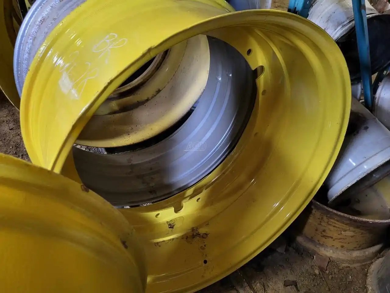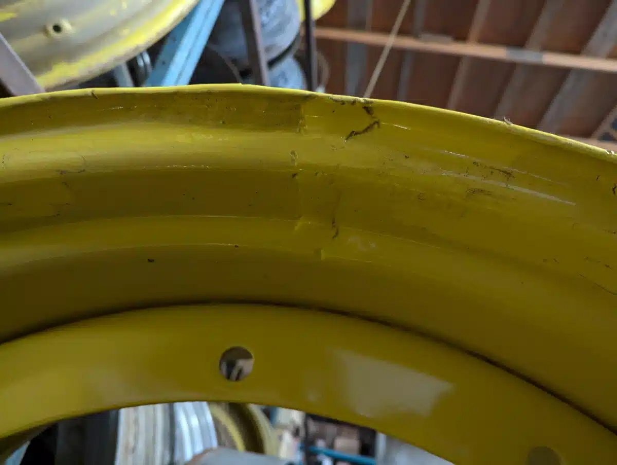 JD disc rim, 12 holes, pair. One rim has been repaired; may require an inner tube. Stock # BR02628