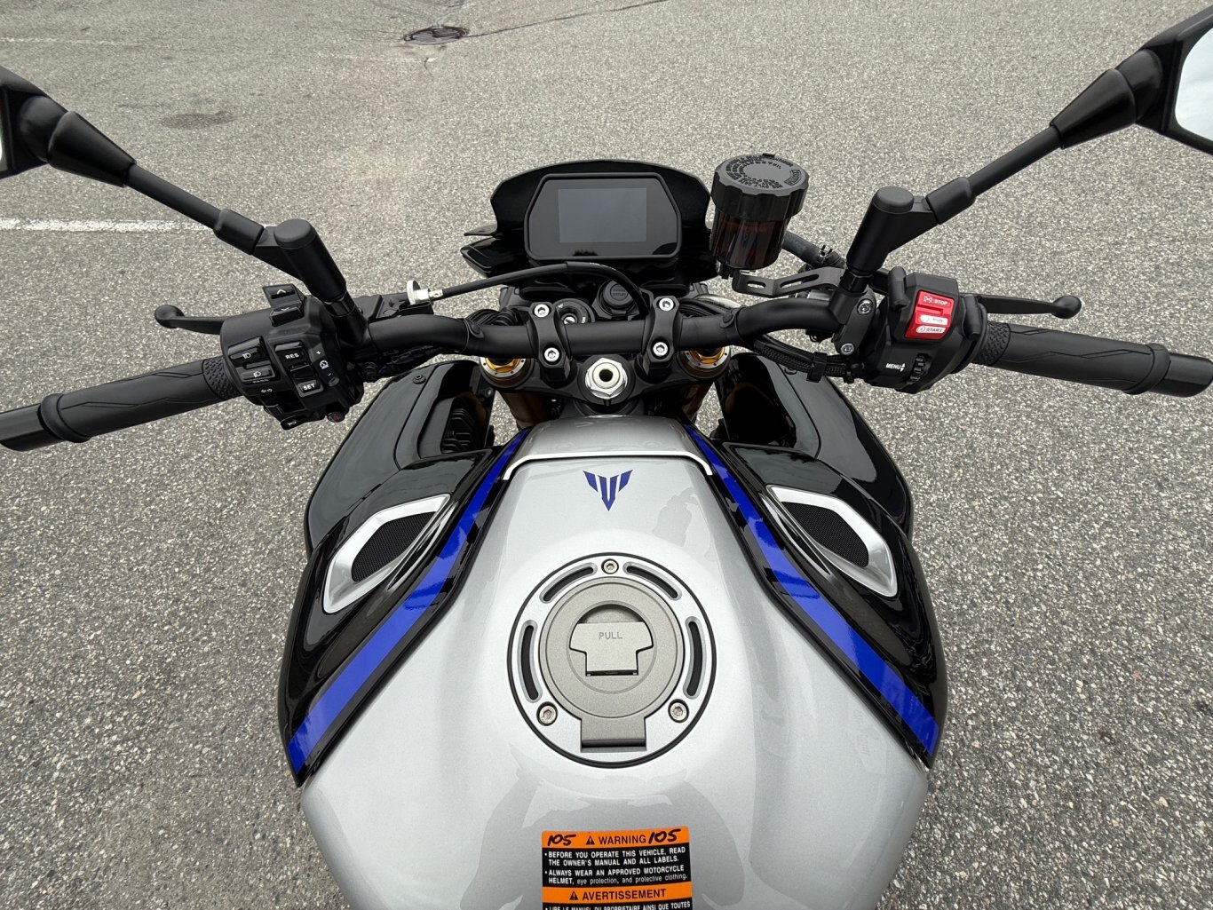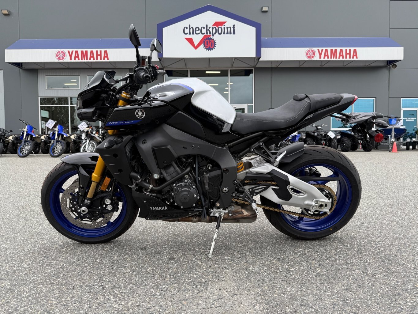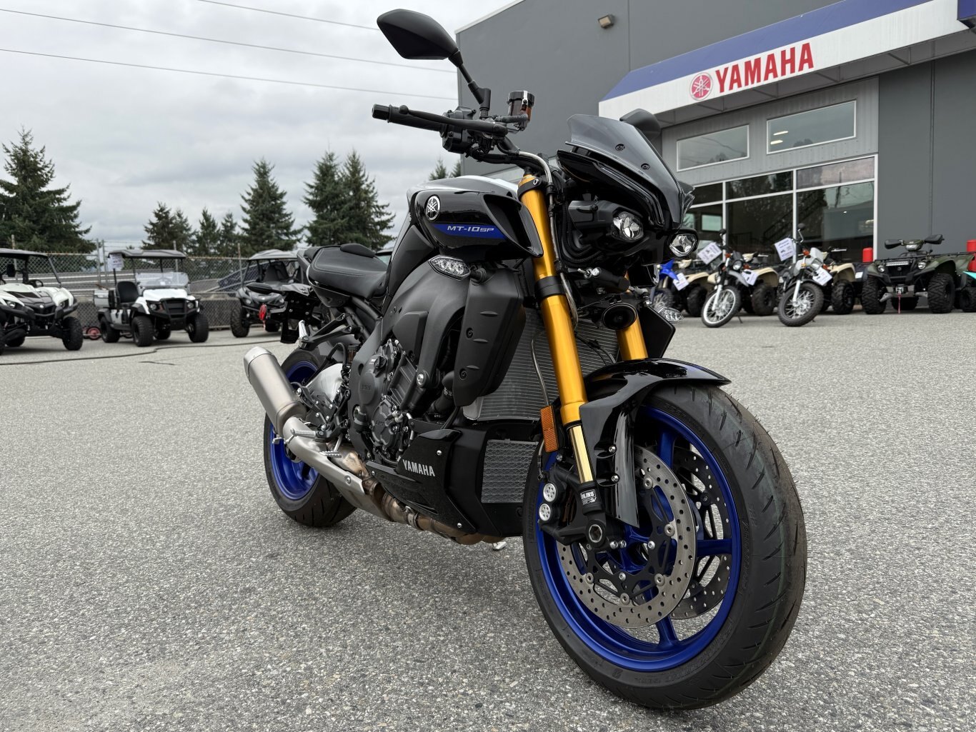 | The 2023 MT-10 SP is ready to introduce you to the ultimate riding experience with its R1- derived engine boasting the most power in the Hyper Naked line-up. Equipped with its semi-active electronic suspension, high-tech rider aids, and list of exclusive premium features, the MT-10 SP represents the dawn of a thrilling new era in total ride-by-wire controllability. And with its compact headlight assembly and redesigned body, the MT-10 SP projects a brutal and aggressive look. |