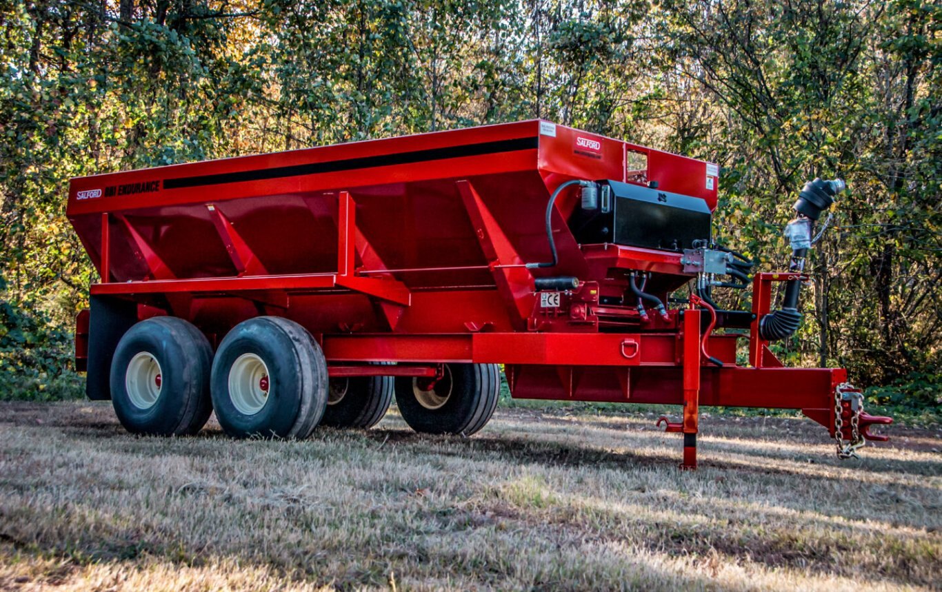 | Salford’s Endurance is the definition of excellence among litter spreaders on the market today. This pull-type spreader provides precision in targeted delivery of organic nutrients and is ideal for poultry litter, manure, shavings and a variety of other organic materials. The Endurance is a tough, durable spreader that achieves targeted application with a uniform spread pattern. Powered by hydraulics and a spinner system that achieves a wide spread pattern, this pull-type unit is available in lengths ranging from 14’–24’ and made to get the job done when it comes to spreading a range from light to heavy materials on farms of all sizes. |