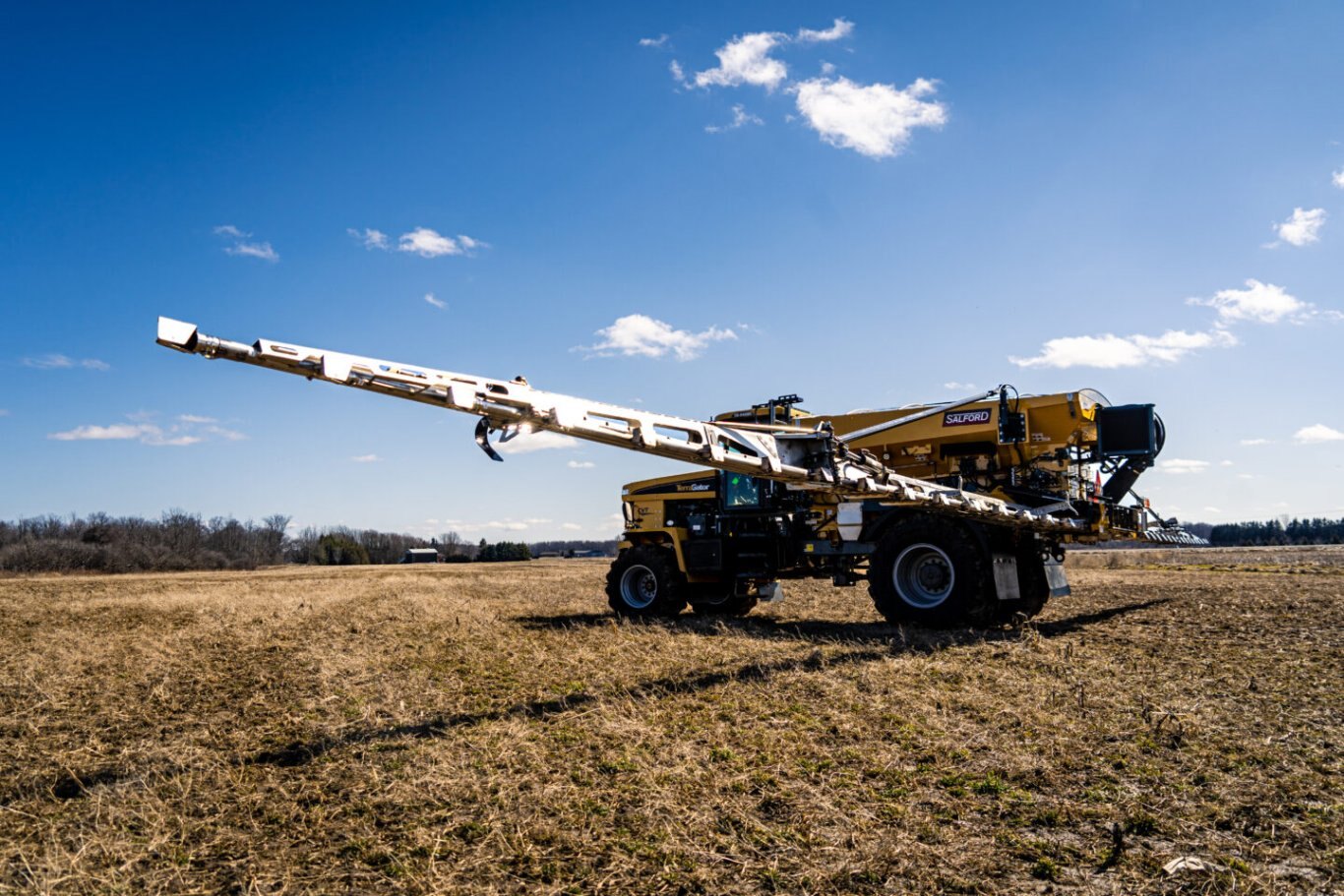 | 6700 AGCO Salford’s next-generation air boom applicator offers versatility, precision application and efficiency all in one complete package. Featuring Salford’s Valmar air boom technology, this self-propelled chassis mounted air boom offers a 90-foot application width with one of the largest hoppers on the market. This design offers greater capacity for fewer fill-ups, an easy-to-operate metering system and the most advanced air boom system available on the market today. The 6700 is ideal for broadcast application of granular fertilizer, granular chemicals, cover crops and micro-nutrients. |