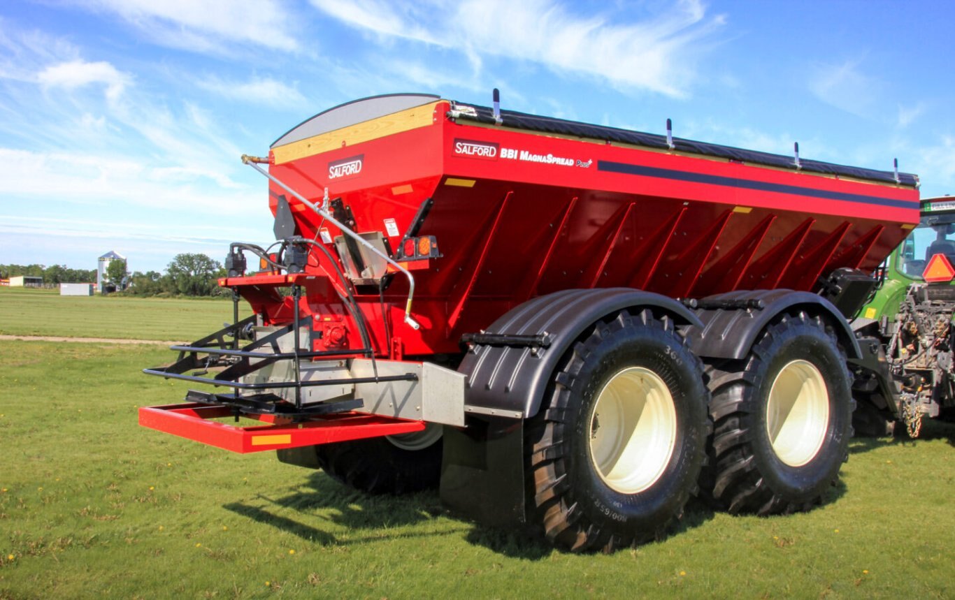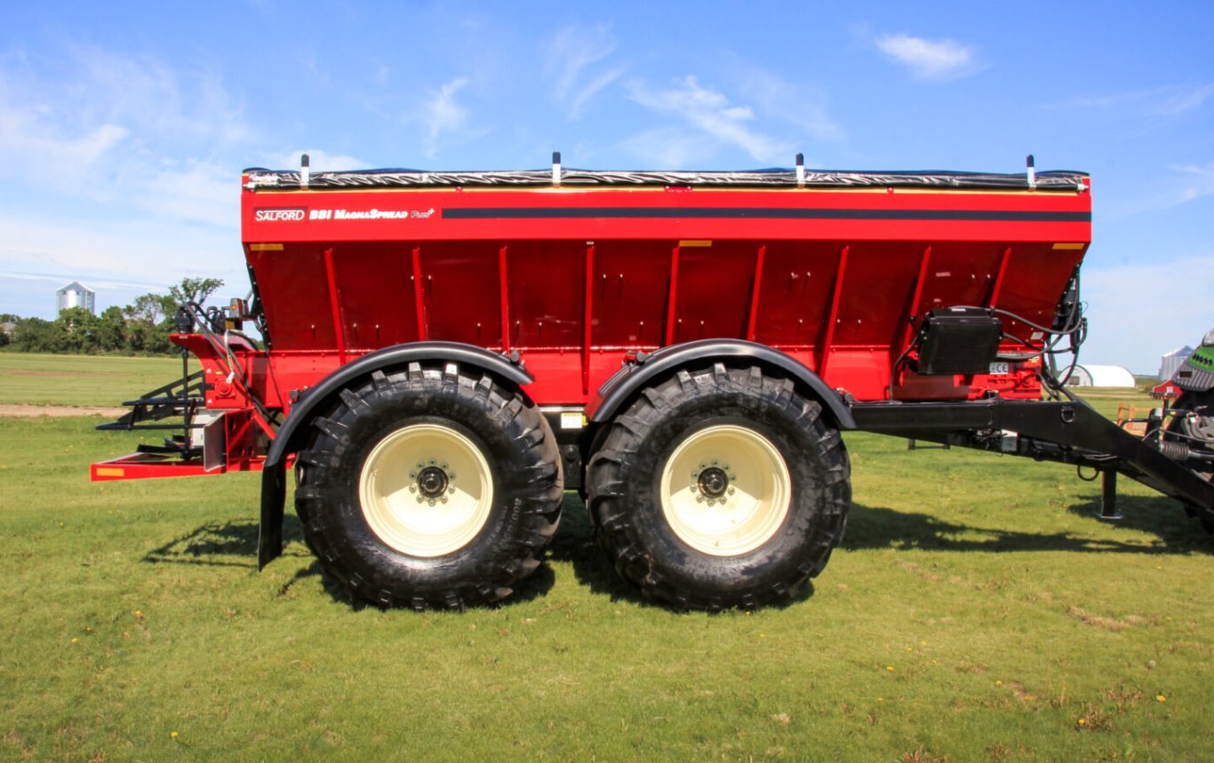 | Build for efficiency and performance, Salford’s BBI MagnaSpread Plus+ combines the use of one spreader to maximize both fertilizer and lime application widths, saving you time and money. This machine has the capacity to spread dry fertilizer up to 120’ and lime up to 60’ – all with one machine. The new MagnaSpread Plus+ builds on the industry leading performance of Salford’s BBI MagnaSpread by adding new technology to maximize your investment. |