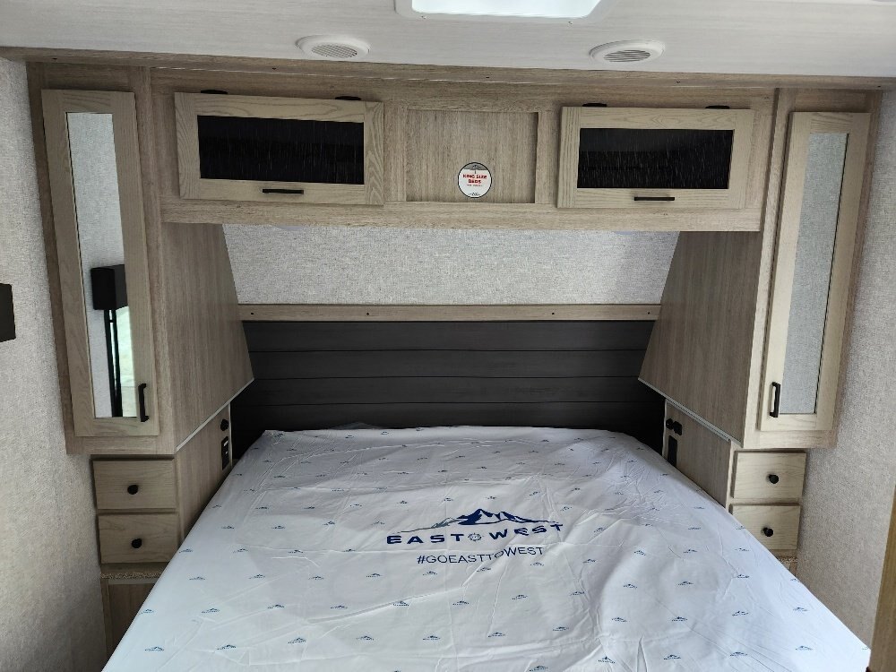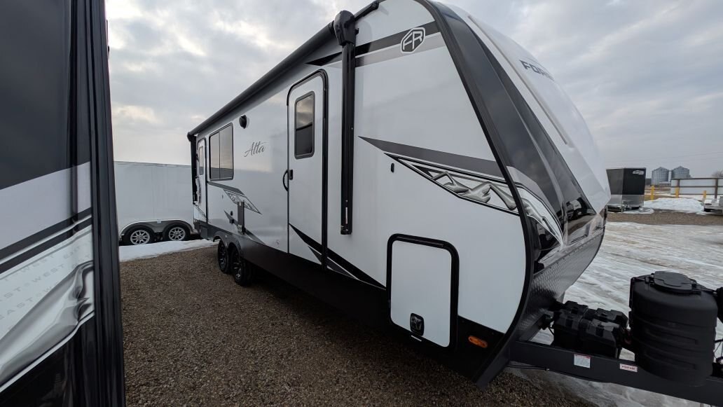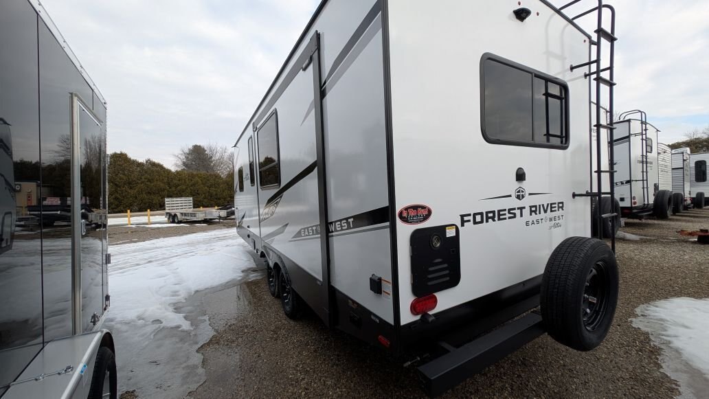 REG: $61,995 SALE: $49,995 + DON\'T PAY TIL MAY 2026 + FREE STORAGE UNTIL MAY The 2025 East to West Alta 2375KRK is in stock now at In The Hunt Trailers. This beautiful rear kitchen couples coach is ready for your next adventure! Financing available for as low as $101/week OAC. In The Hunt Trailers is proud to offer Alta Travel Trailers by East to West. Designed with your comfort and convenience in mind. From countless standard features to lightweight aluminum construction and smooth fiberglass sides, we strive to offer you a product that will make your camping experience enjoyable for the whole family. This rear kitchen, single slide double entry with king size front bedroom layout is sure to be a hit. Outside you will find a full length awning, power stabilizer jacks, docking station, slam latches on cargo drawers, solar prep\'d, aluminum rims and rear ladder. Inside this double entry unit you will find 81\' interior height, ducted hear and air conditioning, 10.7 cu.ft refridgerator, full 48\' dinette, full rear kitchen with stainless sink and high neck faucet, stainless microwave and 3 burner stover with over. Power up/down 40\' large screen LED television with sound bar, electric fireplace, mid bathroom provides lots of storage with sink and vanity and 30X36 shower with full surround and skylight. Up front you will find a 72X80 king size bed and second entrance. Located at 12711 Furnival Rd. Rodney ON. Serving Windsor, Chatham-Kent, Elgin County, London Middlesex, Kitchener, Cambridge, Waterloo, Hamilton, Niagara. Conveniently located in Rodney between the shores of Lake Erie and the blue waters of Lake Huron.