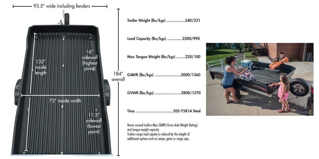 FINANCE FOR AS LOW AS $36/WEEK OAC. CargoMax is the sport utility trailer that is redefining an industry! With the industrys only Ultra Body and fender system combined with its all aluminum construction means that this trailers is guaranteed to never rust, rot or need paint ever! The uni-body design includes virtually indestructible side walls which remain durable even in sub-zero temperatures. FLOEs exclusive floor trussing system delivers maximum strength, excellent water drainage and superior cleaning ability. 2 tilt modes makes it easy to load anything or dump out your load of mulch or dirt. Aluminum Wheels with radial tires. Single rubber torsion axle, radial tires with aluminum rims and all LED lighting. This is perhaps the last trailer you will ever need.