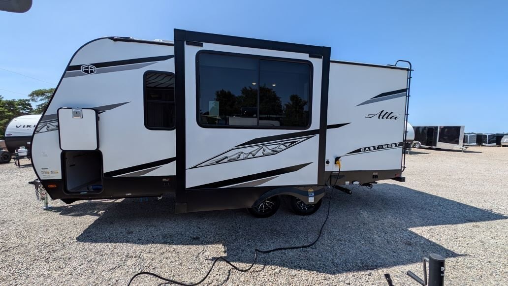 REG: $53,995 SALE: $42,995 \ DON\'T PAY \'TIL MAY 2026 \ FREE STORAGE UNTIL MAY New 2025 East to West Alta 1900MMK are in stock now! This beautiful unit is perfect for the couple that wants all the amenities in a compact unit. Financing available for as low as $87/week OAC. Standard features include: Theatre seating - Extra couch - Murphy bed - 12V Fridge - Microwave - 3 burner gas range - Large countertop - Stainless steel sink - Porcelain toilet - Walk in shower - 32\'\' TV with sound bar and outdoor speakers - Power stabilizer jacks - Aluminum wheels - Solar panel prep. Located at 12711 Furnival Rd. Rodney ON. Serving Windsor, Chatham-Kent, Elgin County, London Middlesex, Kitchener, Cambridge, Waterloo, Hamilton, Niagara. Conveniently located in Rodney between the shores of Lake Erie and the Blue Waters of Lake Huron.
