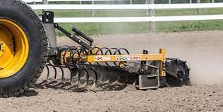 The optional Track Curry wing from MK Martin easily levels the edge of the riding arena for a clean and professional look.