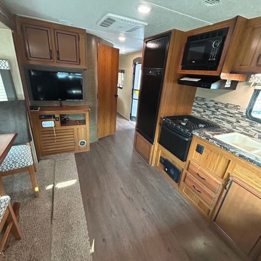 With a dry weight of just over 5,300 pounds, the Launch Ultralight 24 RLS is easily towable by most mid-sized SUVs and trucks. Its aerodynamic design and aluminum construction provide durability and fuel efficiency, while the electric awning and outdoor speakers enhance your outdoor living experience.