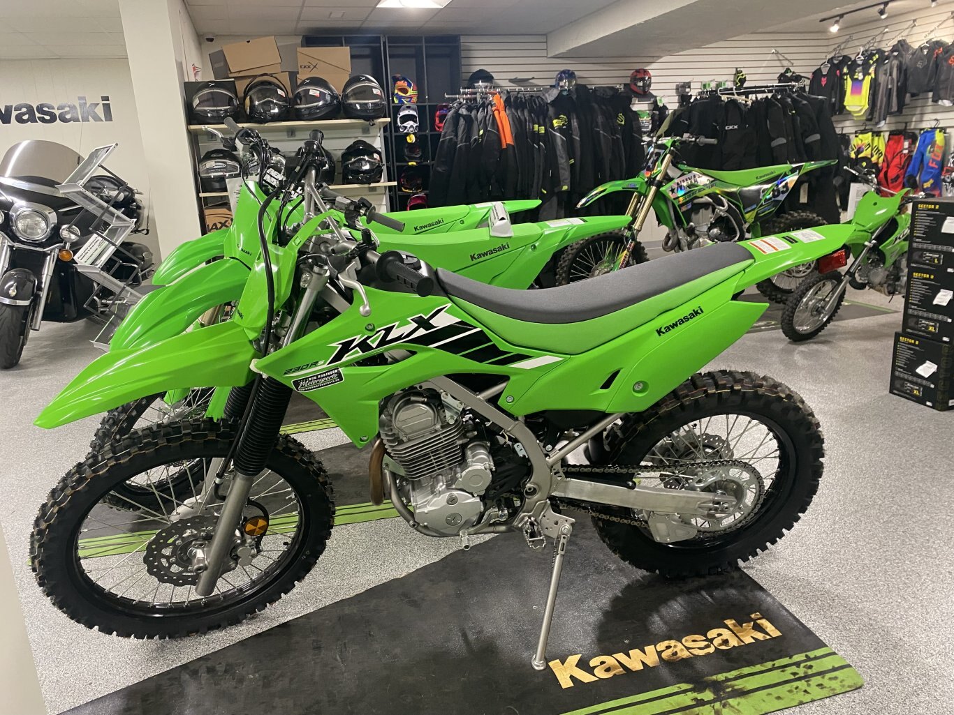 | The full-size fun of the KLX230R trail bike means it’s time to Get Out and Play. Take on terrain with nimble handling and plenty of power, while kicking up some serious dirt along the way. Long-travel suspension paired with improved low-speed control gives this bike a sporty feel that stands out among the rest. Finished with styling inspired by the KX lineup, the highly capable, lightweight package of the KLX230R brings a heavy dose of fun to every off-road ride. |