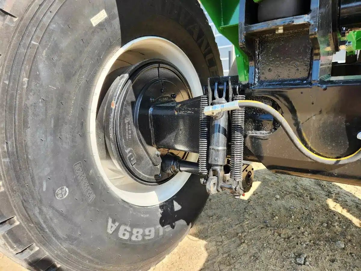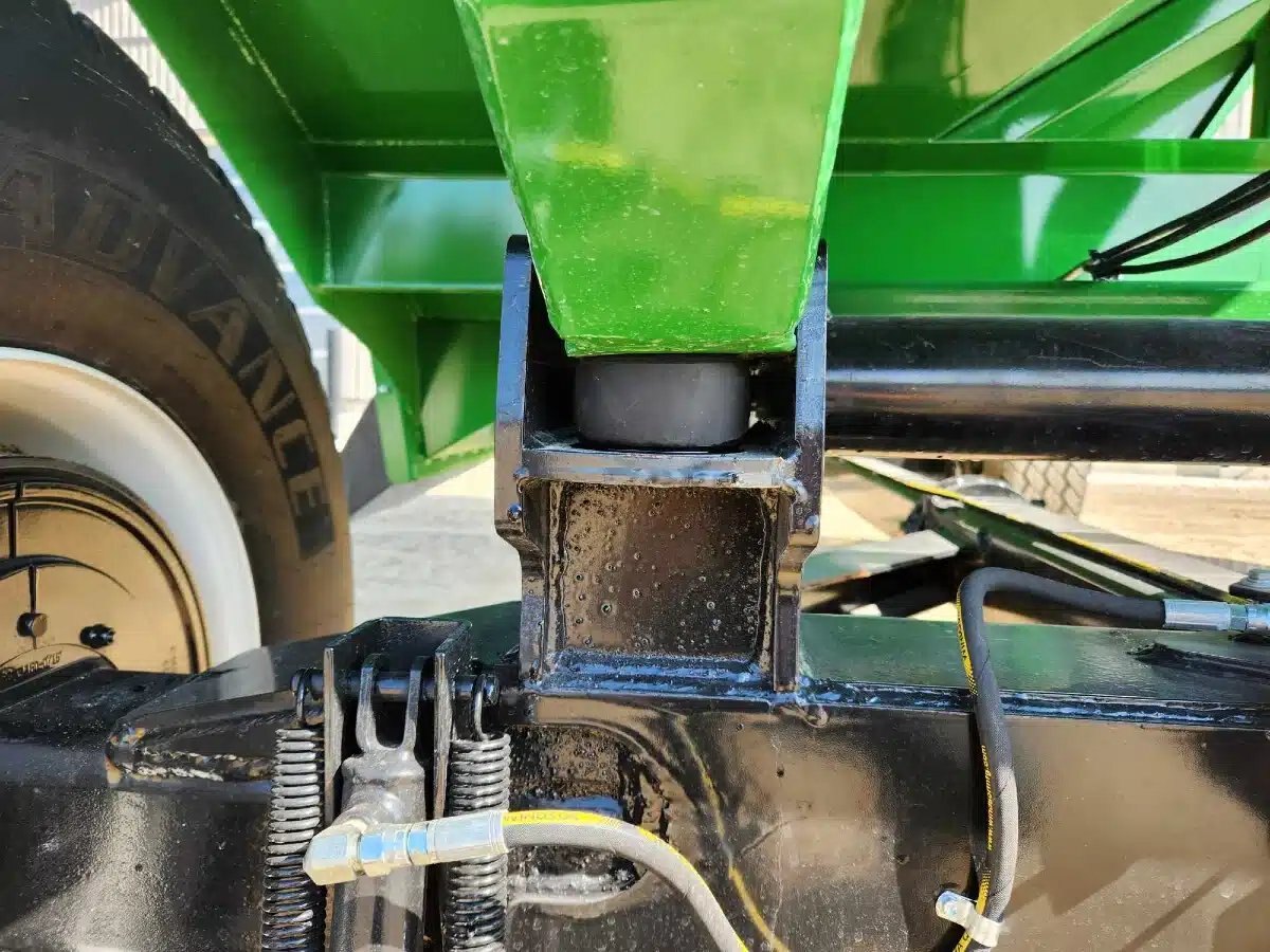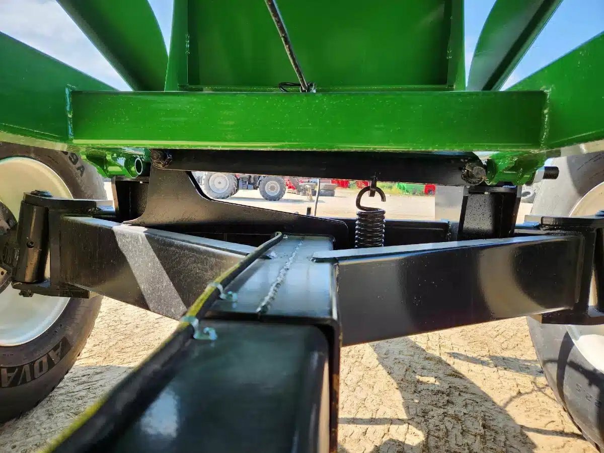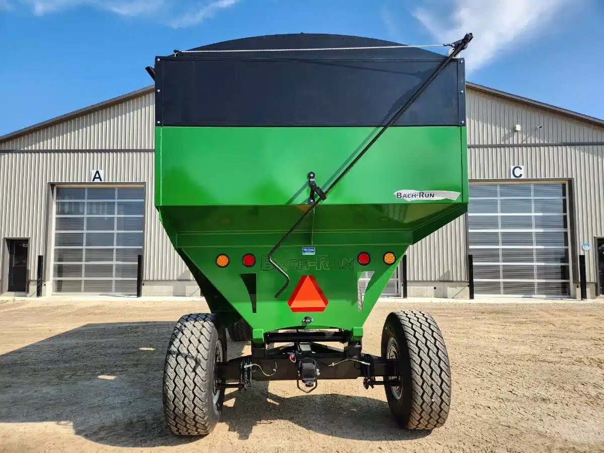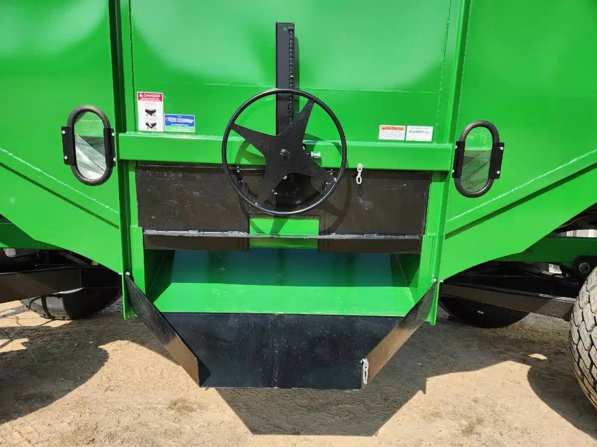 800 bu., 25T, hydraulic drum brakes on 2 wheels, Sulock-style roll tarp, LED lights, new tires 445/65R22.5, the bin rests on 8 rubber springs, spring equalizer, safety chain and SMV sign. Available in red, green, black, blue, orange and yellow