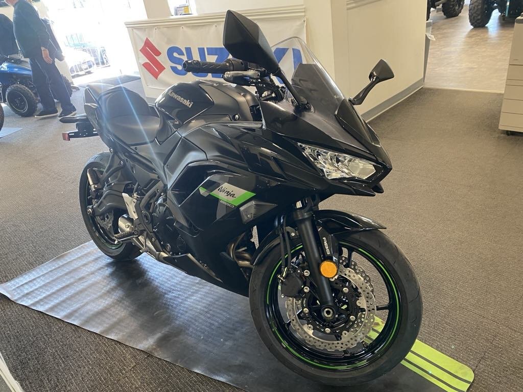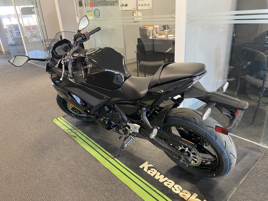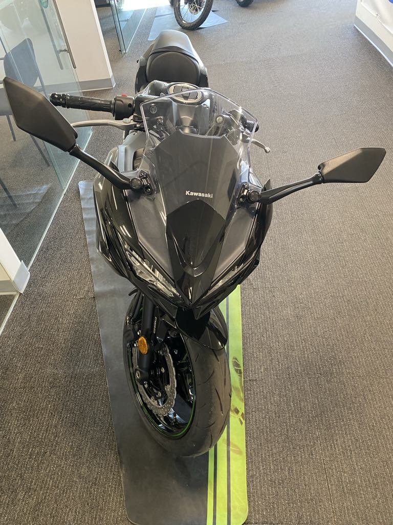 | Built to embody Ninja sportbike lineage, the Ninja 650 motorcycle comes packed with a sporty 649cc engine, next-level technology and sharp styling. Unmistakable sport performance is met with an upright riding position for exciting daily commutes, while a supreme level of attitude reminds you of its legendary heritage. |