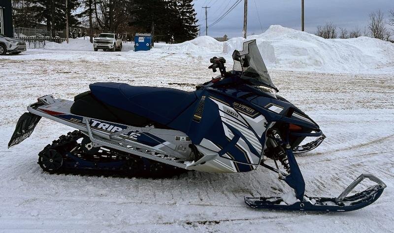 YAMAHA SR VIPER GT 2024 Yamaha SR Viper GT de 2024.Motoneige de sentier performante. Moteur 4 temps Genesis 1049cc, 125 HP. Chenille 137" pouces. Seulement 2437 km. Suspension Fox QS3, skis Stryke. Démarreur électrique, marche arrière. Poignées et siège chauffants, pare-brise haut. Fiable, confortable, prête pour les longues randonnées.