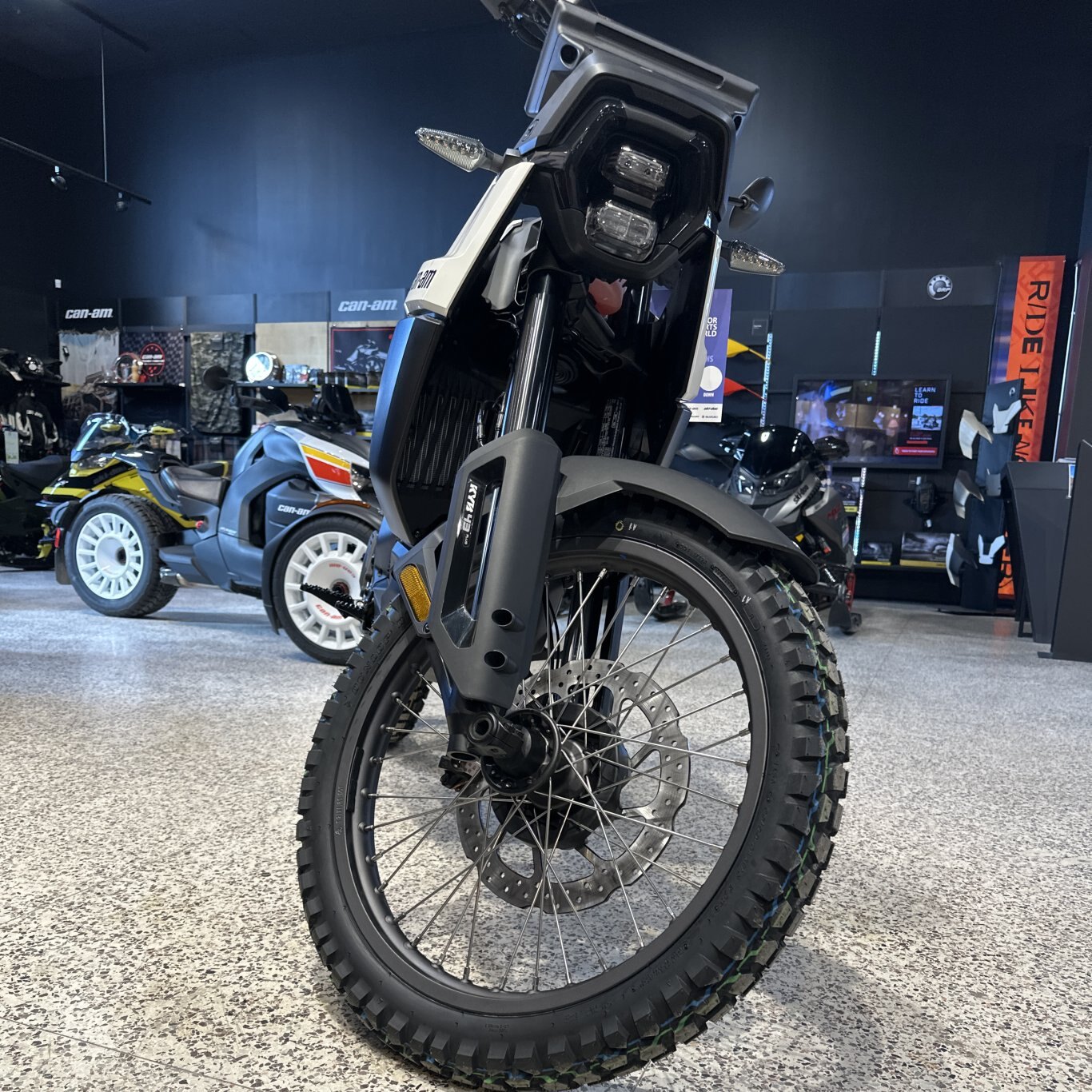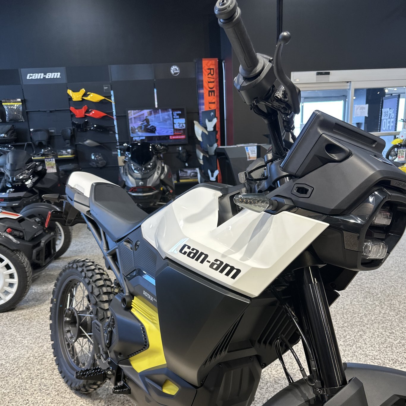 The electric dual-sport Origin handles on-road and off-road riding with ease. It combines Can-Am's storied motocross heritage with today’s technology