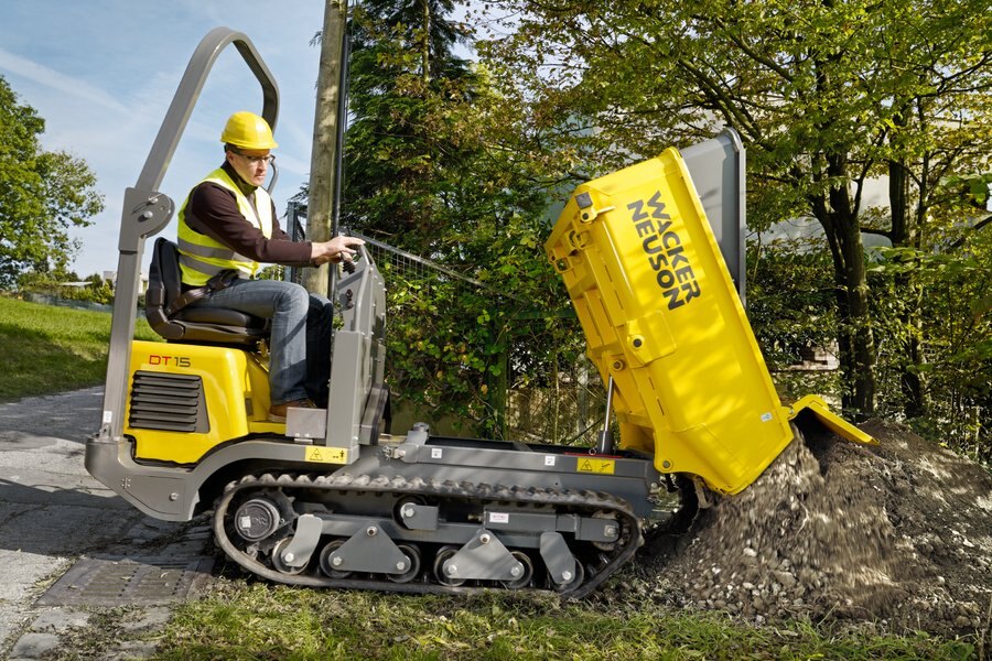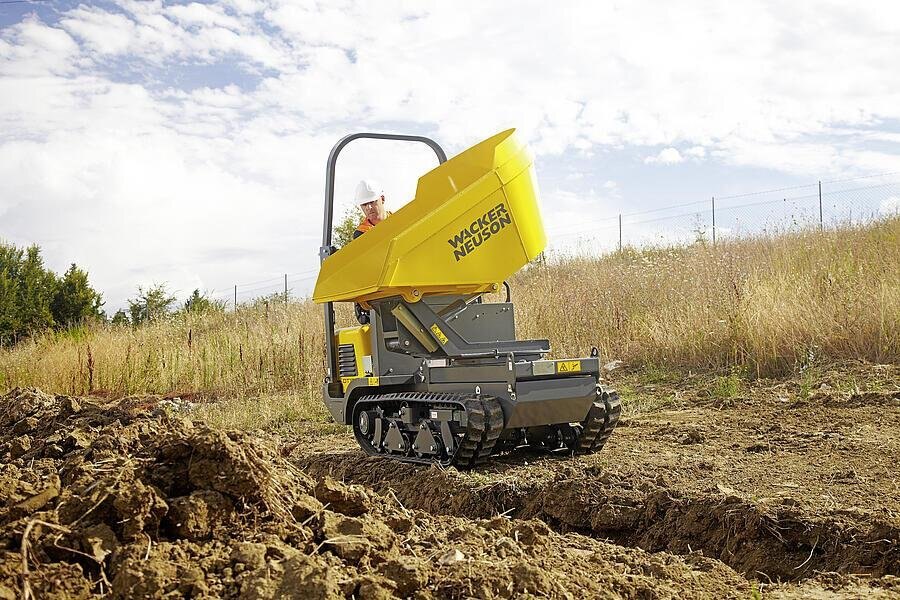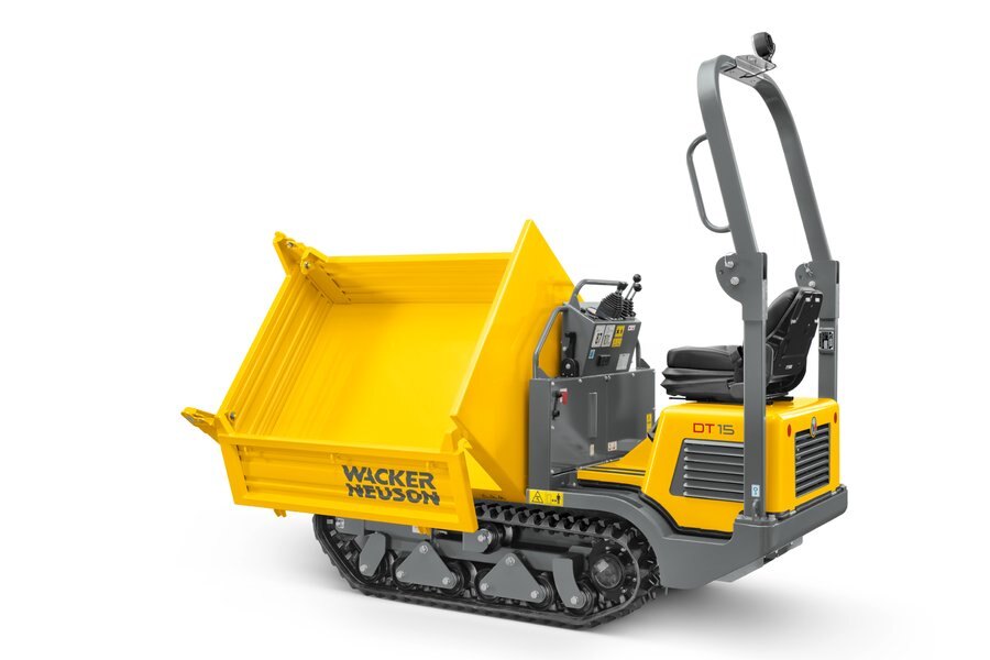 The DT15 is the ideal transporter on the construction site for extensive work. The large skip selection combined with the comfortable and intuitive hydrostatic drive system as well as the high payload make it the perfect versatile material handler. The single-piece engine hood and the optimal arrangement of the service points also make daily maintenance much easier, saving time and effort. The low center of gravity makes it a trustworthy partner in material transport, even with a high load.Track Dumper DT15: Maximum application power