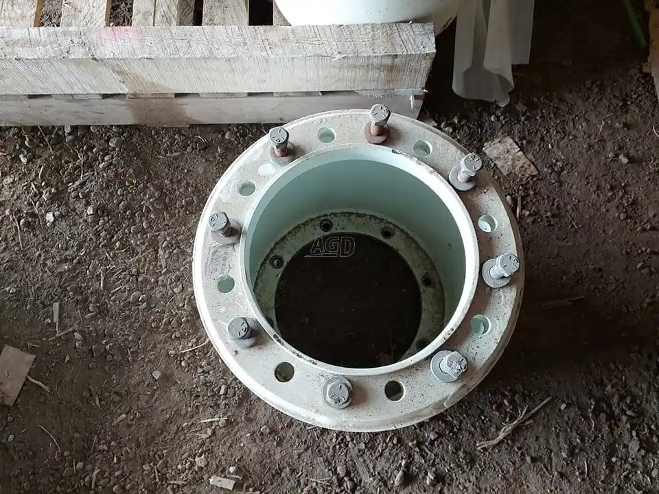 15'' double spacer with 8 bolts. Pilot bore 11.5'', bolt circle 13'', fits on the front of a New Holland T7 series tractor. Stock # BR01636