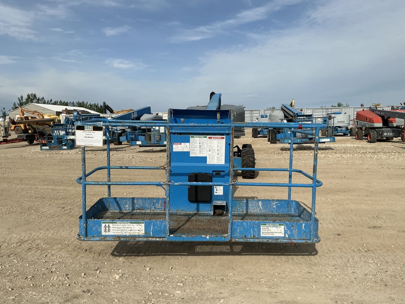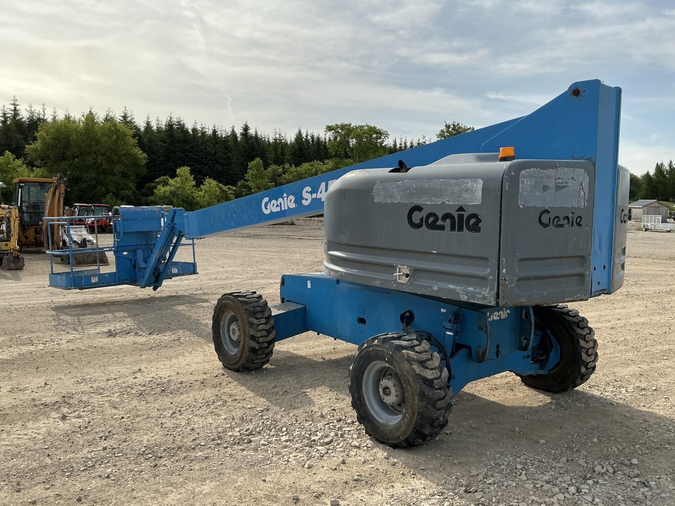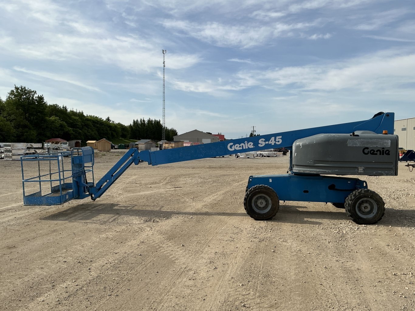 2003 Genie S-45 straight boom with jib. This boom lift has a platform height of 45 feet giving 51 feet working height and 36 feet outreach. 4WD driveline . Powered by a Ford engine. Machine weighs around 15,500 lbs. Hour meter shows 6503.