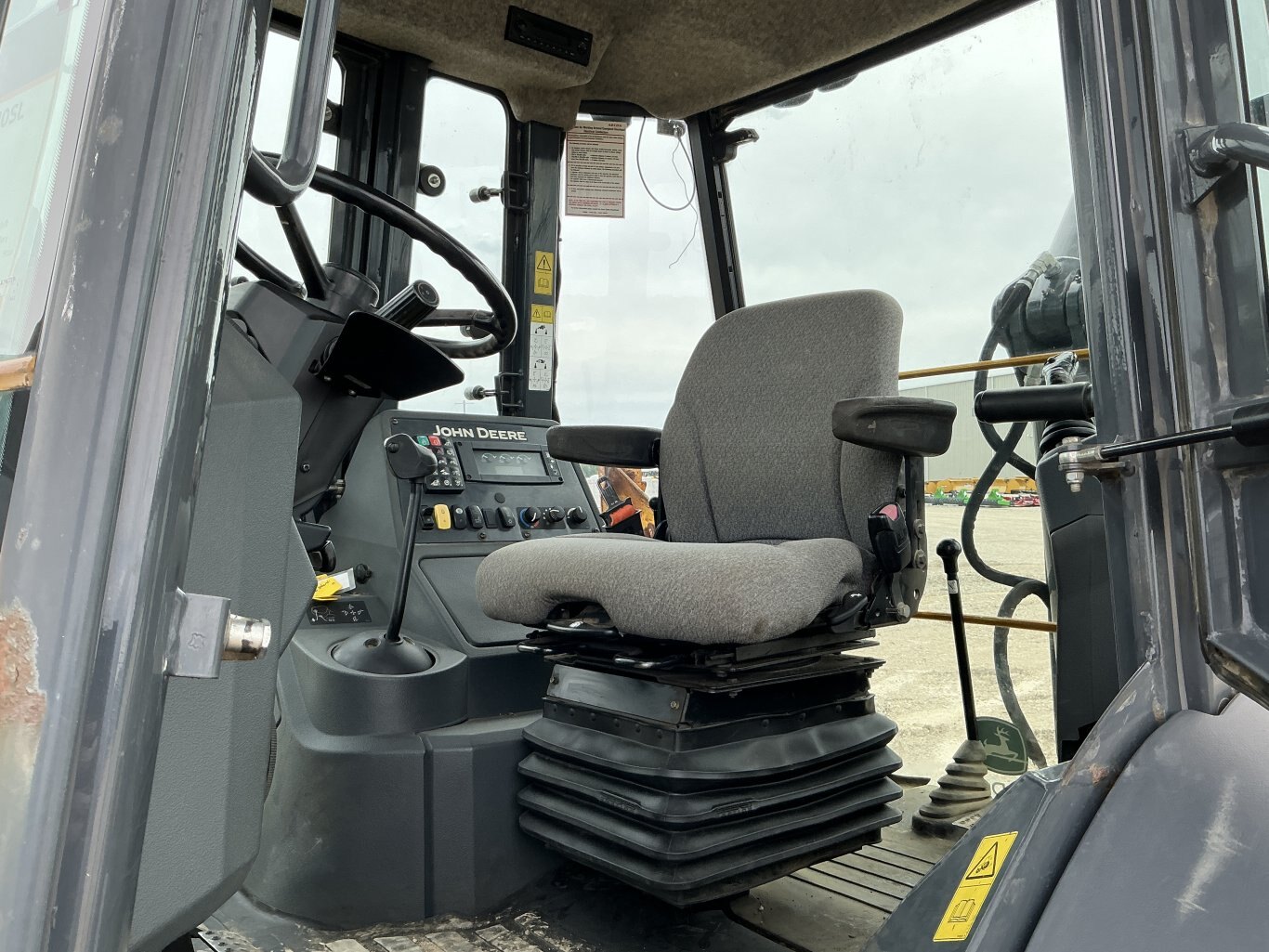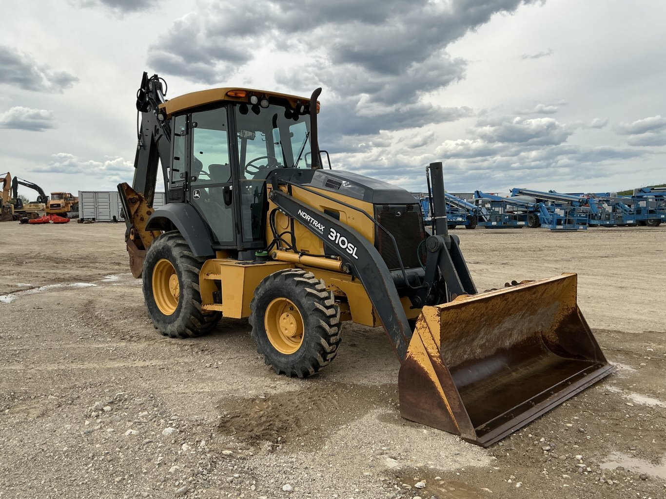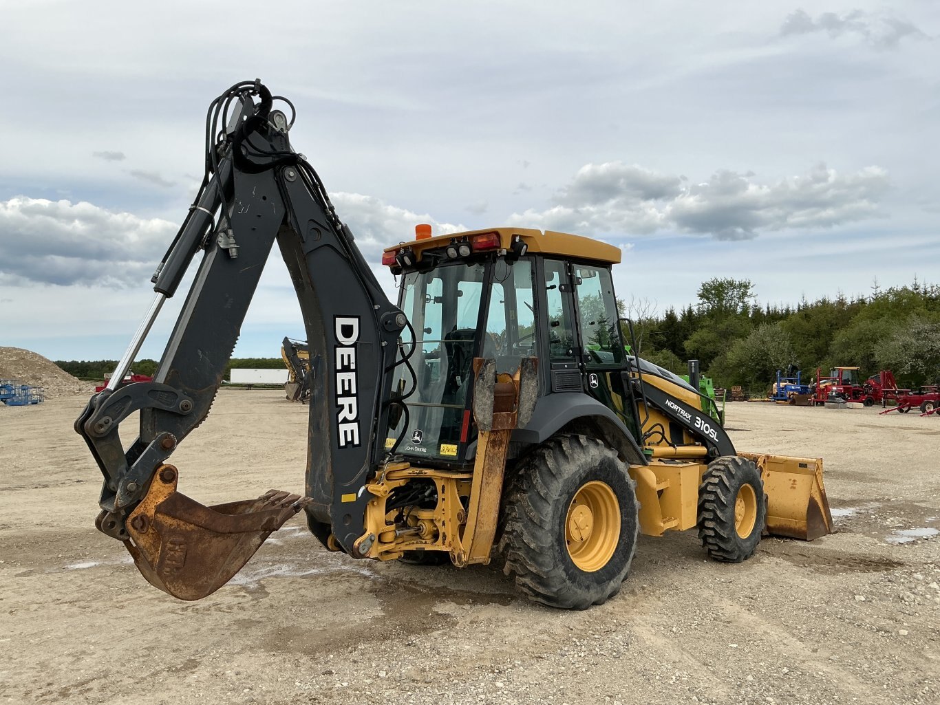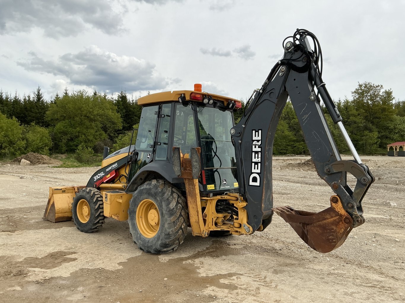 2016 John Deere 310SL Backhoe powered by 101 hp turbo diesel. 4X4 powershift transmission. Front hydraulic quick connect. Rear manual quick connect and auxiliary hydraulics. Weight around 16,356 lbs. Enclosed heated cab. Pilot controls. Extendahoe. Hour meter reads 5380. Located in Maxwell Ontario