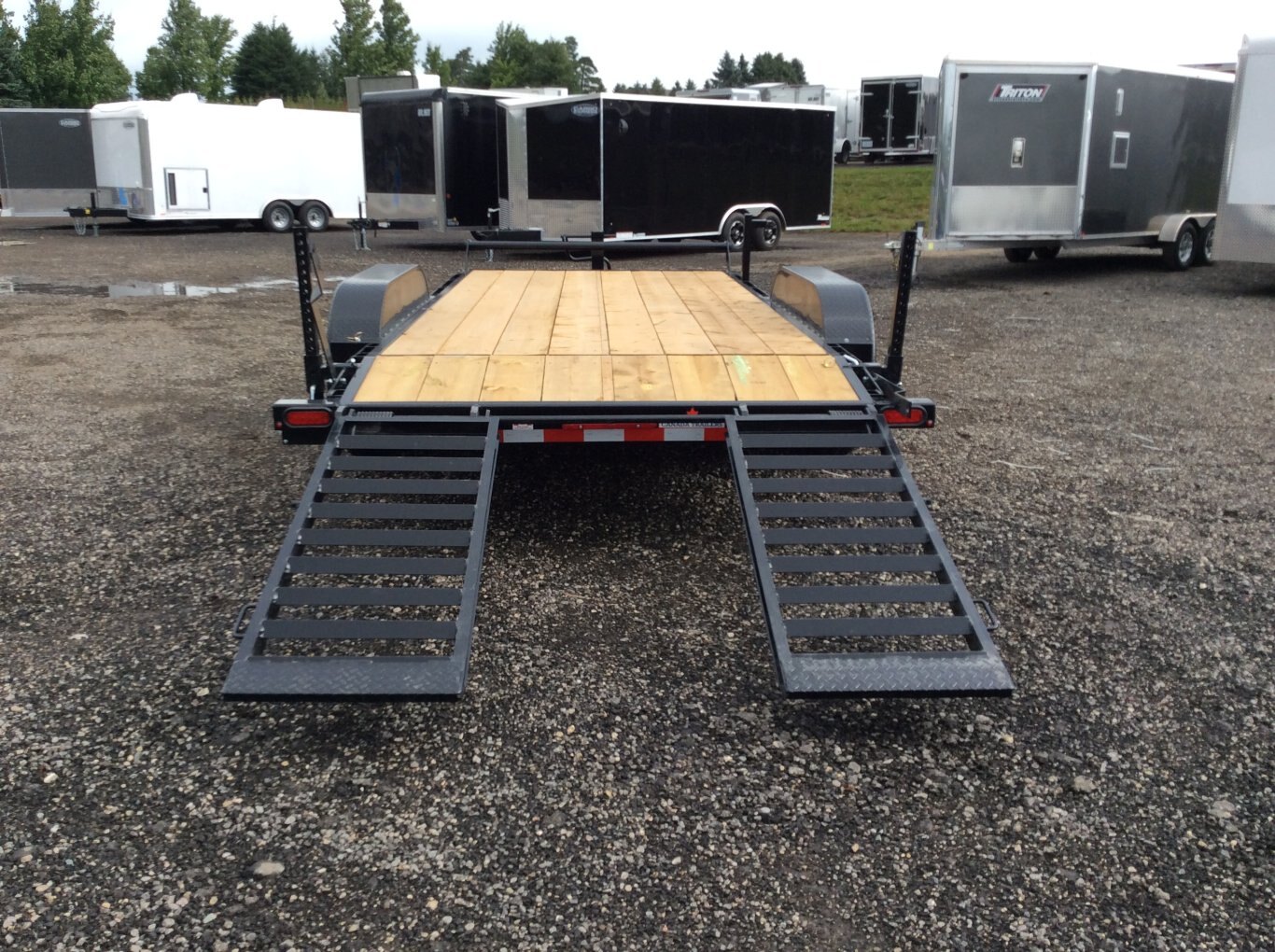 15,120LB GVWR, 2 7000LB Axles with Easy Lube Spindles and Slipper Spring Suspension, 16 Inch Radial Tires, Electric Brakes on Both Axles, 3 Inch Adjustable Pintle Eye, 12,000LB Drop Leg Jack, 24 Inch Deck Height, 2' Beavertail with Wood Floor, 5' Upright Spring Assisted Ramps, Pressure Treated Wood Floor, 52 Inch Tongue Length, Stake Pockets and Rub Rails, Diamond Plate Fenders, Spare Tire Mount, Sealed Rubber Mount LED Lights, Full Sealed Wire Harness, Welded Tie Rings, Powder Coat Painted, Scorpion Stone Guard on the Front