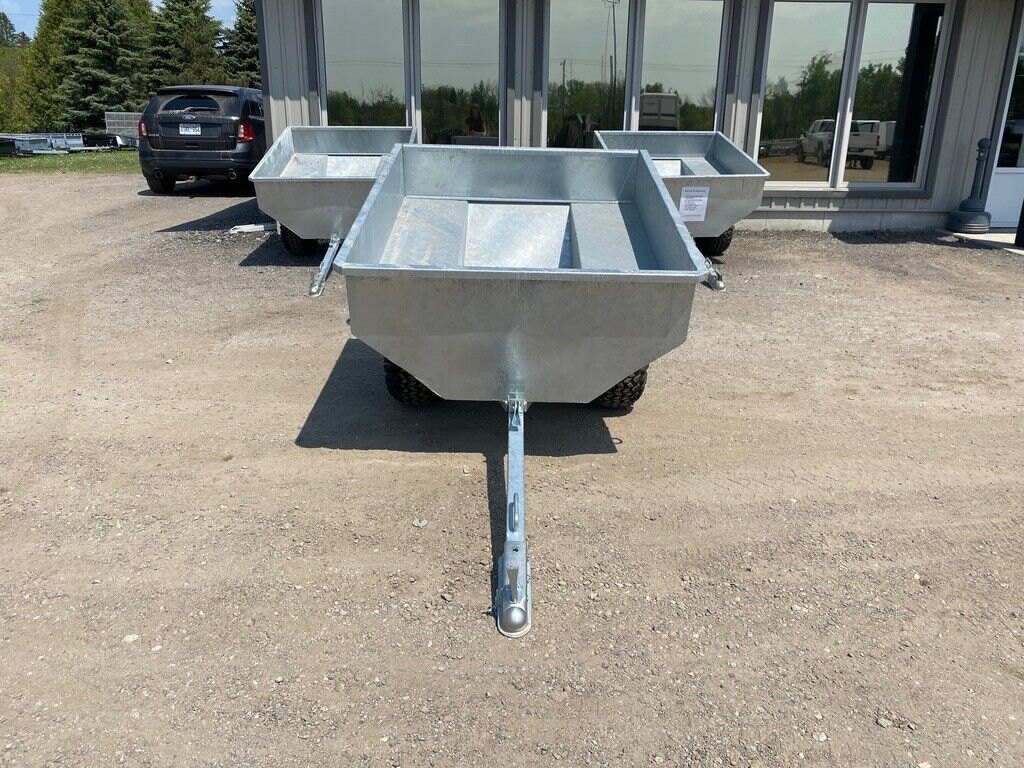 2000LB GVWR, Single Axle, 22 Inch High Flotation Knobby Tires, EZ Lube Hubs, Tilt Mechanism, Removable Tailgate, 4 Tie Down Loops, Ball Coupler, Extreme Duty Construction, Galvanized