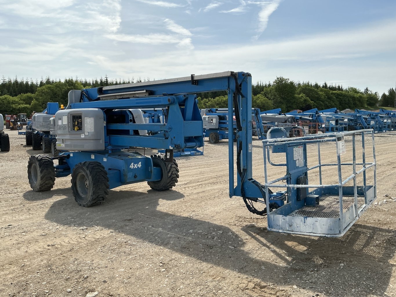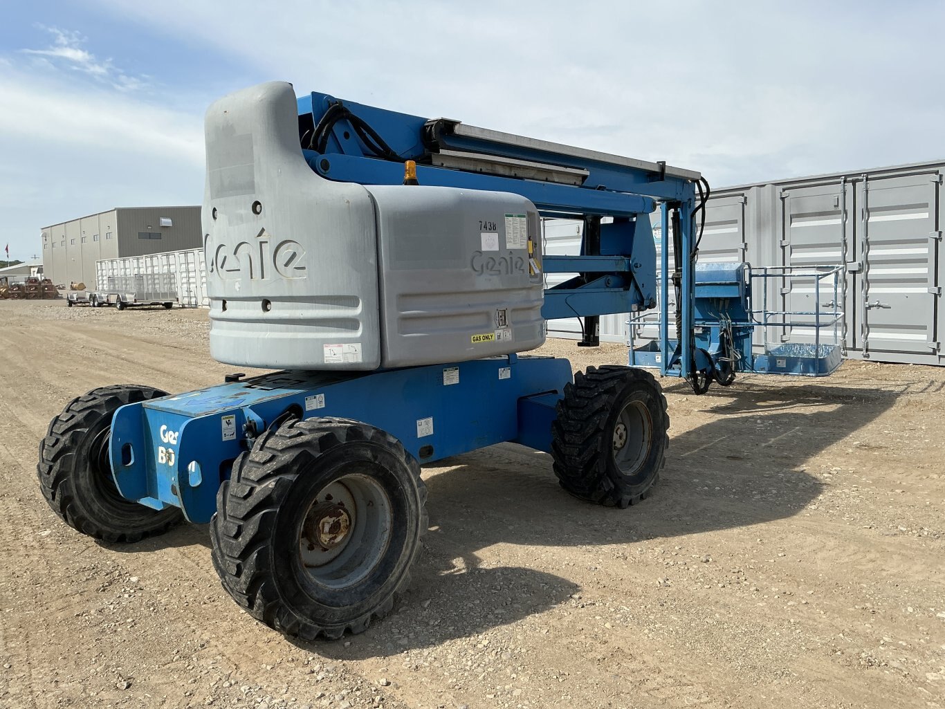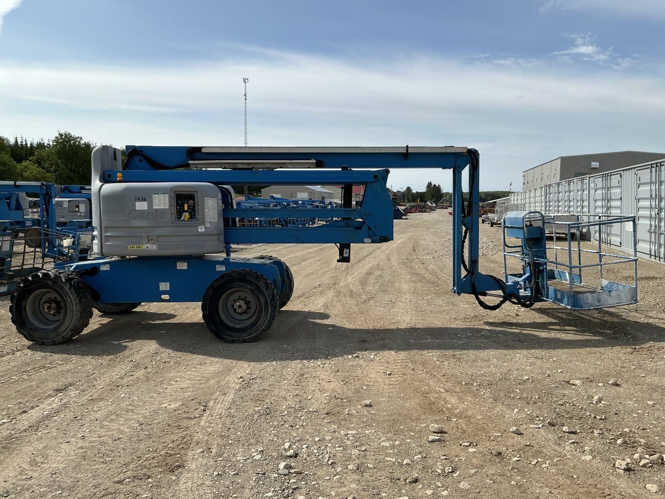 Articulating man lift, 2007Genie model Z60/34. This boom lift has a platform height of 60 feet giving 66 feet working height and 36 feet outreach. 4WD driveline and powered by a Ford gas engine. Machine weighs around 24,000 lbs. Valid structural sticker till Aug 2027. Hour meter show 4096.
