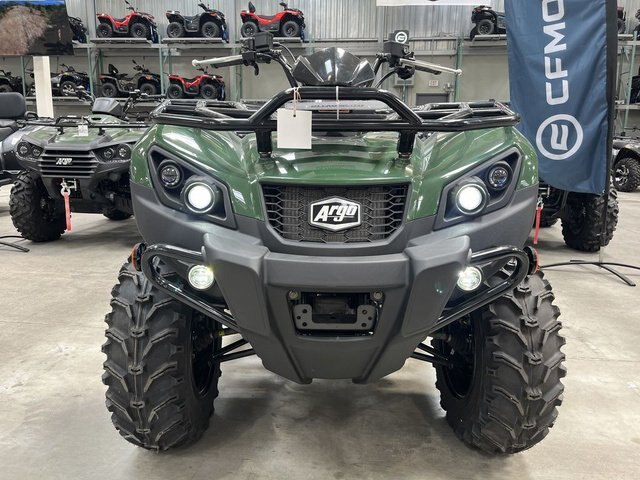 The 2023 Argo?Xplorer?XR?500 is a rugged, go-anywhere ATV built for serious off-road adventures. Its liquid-cooled 443?cc SOHC single-cylinder engine delivers steady power through a CVTech automatic transmission, offering smooth operation in high, low, neutral, or reverse modes. With selectable 2WD/4WD and an electric front differential lock, it gives you the traction you need when trails get tough. Designed on a durable steel frame, this ATV weighs in around 600?lb dry and offers 10?in of ground clearance, making it capable over rocks, roots, and uneven terrain. The fully independent suspension features double A-arms front and rear with 7?in of travel and gas shocks that absorb bumps confidently. It rides on aggressive 24-inch Kenda tires mounted on sturdy aluminum rims for extra grip and durability. Versatility meets function with a towing capacity of 1,050?lb, supported by front and rear racks rated for 120?lb and 240?lb respectively, plus a 2-inch hitch receiver. A 3,000-lb winch comes standard to help with hauling or recovery work. Essential ride info—speed, RPM, fuel, transmission mode—is displayed on a digital panel, and LED headlights provide clear visibility in low-light conditions. At approximately 84?in long, 43?in wide, with a 48?in wheelbase and 33?in seat height, the Xplorer?XR?500 balances stability with maneuverability. Built to perform on trails or tackle chores around the property, it offers a strong blend of comfort, capability, and confidence—all backed by Argo’s reputation for adventure-ready design.
