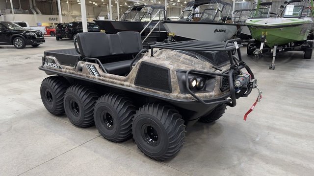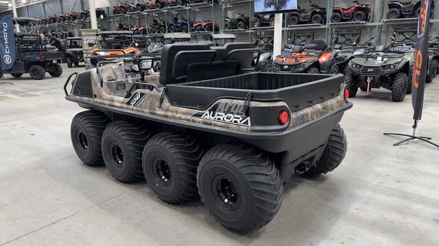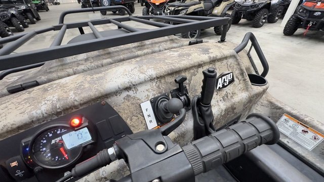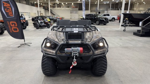 2023 Argo® Aurora 950 HuntMaster Camo} GIVE YOUR TAXIDERMIST A HEADS UP. This is where every epic hunt begins. Yes, its the woods-wandering, range-crossing, swamp-surfing, amphibious Aurora 950 HuntMaster. This one was built to go on the prowl. For starters, you simply cant go wrong with the massive VX 950 V-Twin engine that powers this big-game stalking machine. Youll have no problem getting out to that spot known only to you. Its got room for your whole hunting party, as well as for any new acquisitions that need hauling back. Theres a reliable Admiral transmission, 25\'\' low-pressure tires, TrueTimber® Prairie camo and all the makings of a happy end to your hunt. Features may include: VX 950 ENGINE This VX 950 V-Twin Fan-Cooled engine is built to never let you down. Big Block performance that delivers our highest horsepower and highest torque available on the Aurora and Conquest Series. INSTANT TORQUE CLUTCH (ITC) The ARGO Instant Torque Drive System (ITDS) dramatically improves low-end torque and increases acceleration. The Instant Torque Clutch (ITC) is designed to provide the optimal gear ratio, shifting seamlessly throughout the full range to utilize the massive torque and power of our engines. ADMIRAL TRANSMISSION WITH APS The ODG Admiral transmission with ARGO Progressive Steering (APS) is an innovation in braking force application to the transmission steering differential. By adding a spring element between the handlebars and the brake system, we have achieved a progressive dual-rate steering system. This development, combined with the Admiral transmission, is a technological milestone that gives the ultimate driver experience. Steering events are effortless and confidence-inspiring, offering the smoothest turning available in an ARGO XTV. An ARGO is as fun and comfortable to drive as any UTV. ARGO PROGRESSIVE STEERING (APS) APS is an innovation in the area of braking force application to the transmission steering differential. By adding a spring element between the handlebars and the brake system we achieved a progressive, dual- rate steering system. Steering events are now effortless with an increase of 4X wider range of steering motion, offering the smoothest turning available in an ARGO XTV. APS makes it as fun and comfortable to drive as any UTV. 25\'\' TIRES ON AIRLOCK STEEL RIMS Aurora models have 25 XT-117 tires on premium 9\'\' AirLock steel rims. The chevron treads maximize your power in thick mud and increase your propulsion in whatever waterway you decide to drive in. REDUCED UNDERHOOD TEMPERATURE To ensure comfort for the operator and passengers, heat-reflective and absorptive material is integrated into the firewall. A composite exhaust shroud goes one step further and effectively redirects heat while producing a subtle note from the exhaust. TRUETIMBER PRAIRIE CAMO ARGO is proud to use TrueTimber® Prairie camo. TrueTimber utilizes the latest technology to create the industry\'s most realistic camouflage patterns. Make sure your hunt is successful this year with ARGO. Go where others can\'t. HEAVY-DUTY STEEL FRONT RACK Hunting gear. Camping gear. Fishing gear. Pack your stuff and get out of here. The Huntmaster has a heavy-duty steel front rack to bring all the things you need to make your adventure safe and rewarding. Wherever you go, make sure you go where others can\'t. AMPHIBIOUS BODY Yes, this XTV floats. The one-piece amphibious lower body is the signature ARGO design feature. Its smooth, durable underbody floats over potential snags, stumps and outcrops, as well as swamps and water.