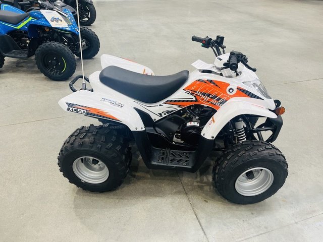 $51. Bi-Weekly or $105. Monthly 2023 Argo® Xplorer XC 90 XPLORER XC 90 Introducing the all-new Xplorer XC 90 youth ATV. This model is engineered for kids 12 years of age and up to provide lifelong memories. The XC 90 has many safety features straight from the factory, including an adjustable throttle for limiting speed and a handlebar tether cord adults can pull as a remote shut-off switch to stop the 89cc fan-cooled engine. This is the perfect youth platform to teach the fundamentals of riding and to learn the rules of natures endless playground. Features may include: TRANSMISSION Smooth in any direction. The durable automatic CVT transmission offers three gear positions forward, neutral and reverse. SINGLE A-ARM SUSPENSION While being smaller in size, the XC 90 provides a smooth ride with independent single A-arm suspension with 2.8 of travel in the front and swing arm suspension with 2.9\' of travel in the rear. SINGLE HIGH LOW BEAM HEADLIGHTS Safety first and foremost. Front-mounted single headlight, rear taillight and brake light provides added visibility during all hours of operation. SAFETY Safety is priority number one when your kids are learning to ride. Ensuring operator safety, the XC 90 comes standard with an adjustable throttle for speed limiting, a tether cord that can be pulled by an adult to shutoff the ATV and a highly visible orange whip flag helps you and other vehicles keep an eye on your young rider at all times. 89cc Fan-Cooled Carbureted Engine Automatic CVT Electric Start with Kickstart Back-up Option Chain Drive Steel Rims 2WD F/N/R Gear Selection Independent Single A-arm Suspension with Dual Drum Brakes in the Front Swing Arm Suspension with Hydraulic Disc Brake in the Rear Single Hi/Low Beam Headlight Rear Taillight and Brake Light Highly Visible Orange Whip Flag Tether Cord
