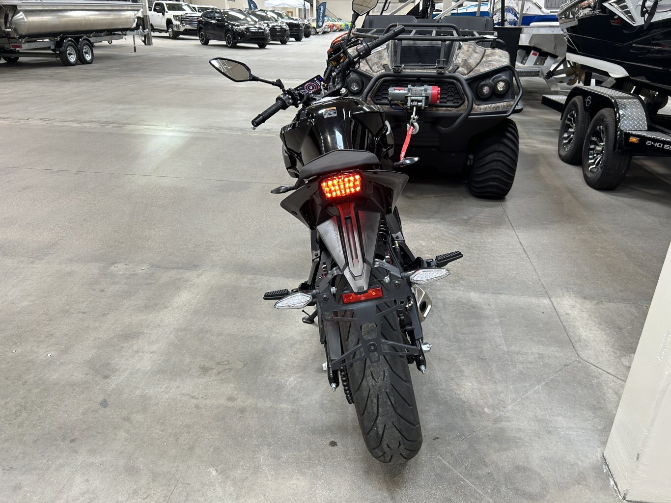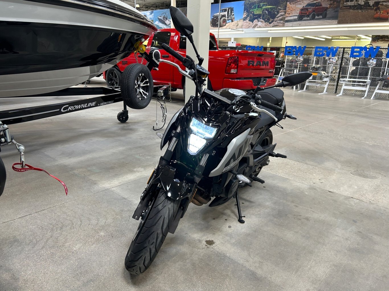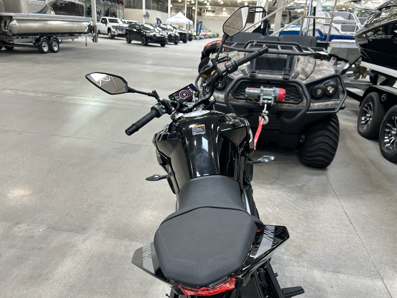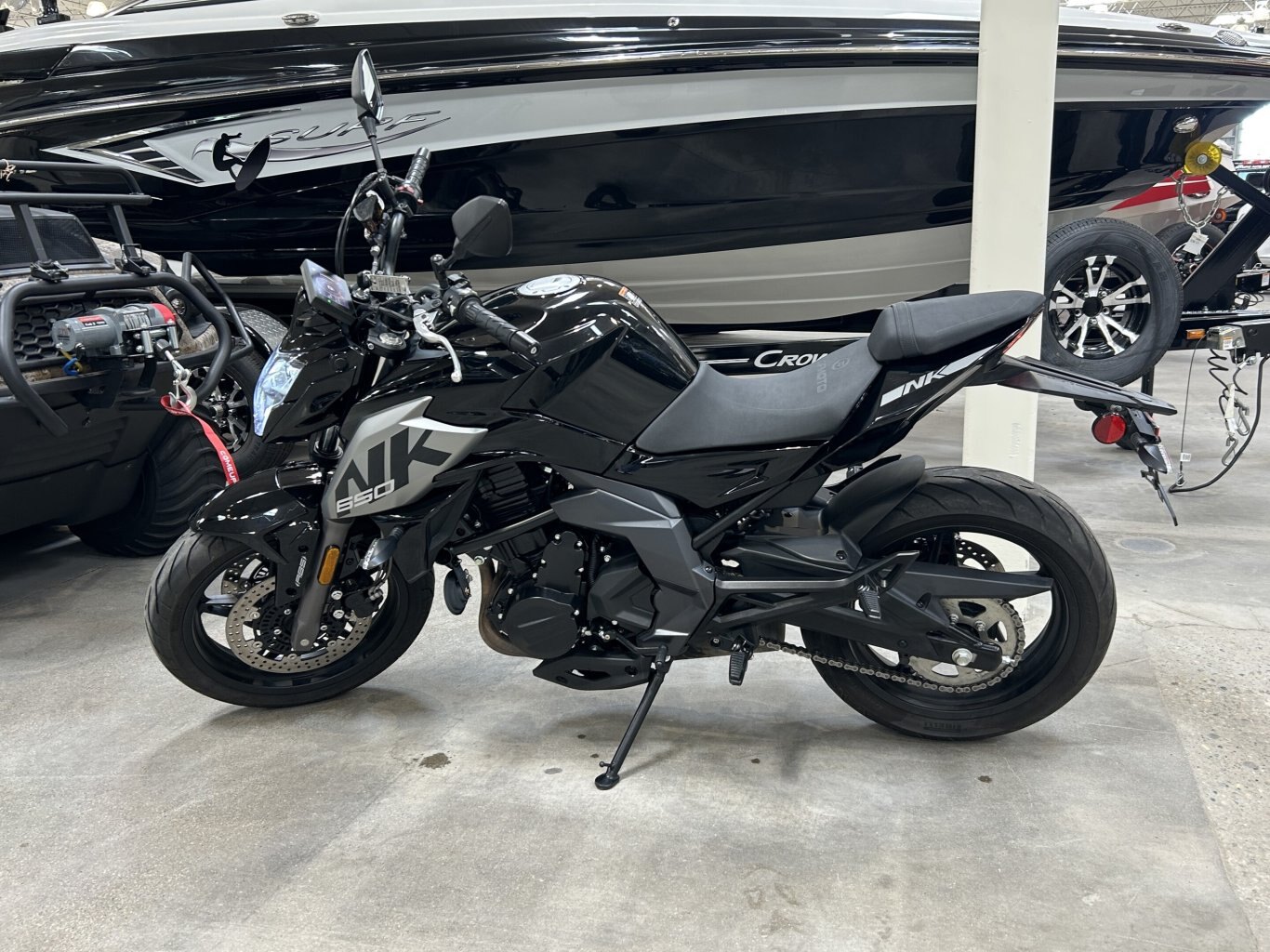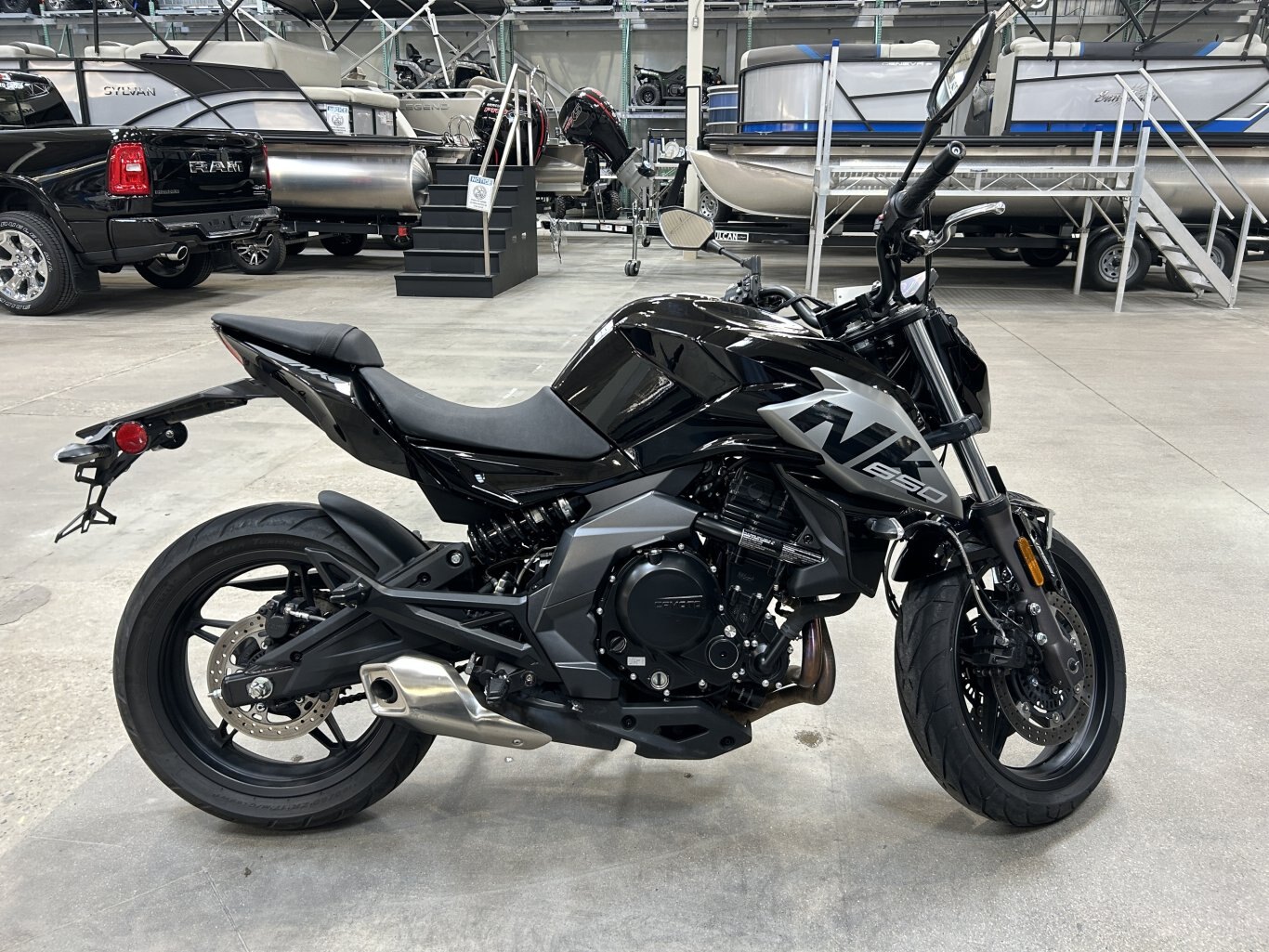 The 2023 CFMOTO 650 NK is a versatile motorcycle that combines style, performance, and comfort. Powered by a 649cc liquid-cooled parallel-twin engine, it delivers approximately 60 horsepower, making it suitable for both city commuting and weekend rides. Designed with rider comfort in mind, the 650 NK features an upright riding position and a seat height of 780mm, accommodating a wide range of riders. The KYB suspension system, consisting of a telescopic front fork and a rear monoshock, ensures a smooth and stable ride across various terrains. Safety is a priority with the inclusion of dual-channel Continental ABS and J.Juan disc brakes, providing reliable stopping power. The motorcycle is equipped with 17-inch alloy wheels and Pirelli Angel GT tires, offering excellent grip and handling. For added convenience, the 650 NK comes with a 5-inch TFT display that provides clear visibility of essential information, including speed, gear position, and fuel level. The full LED lighting system enhances visibility and adds to the bike\'s modern aesthetic. With a 17-liter fuel tank, the 650 NK offers extended range, reducing the frequency of fuel stops. Available in Nebula Black and Nebula White, this motorcycle combines sleek design with practical features, making it an excellent choice for riders seeking a reliable and enjoyable ride.