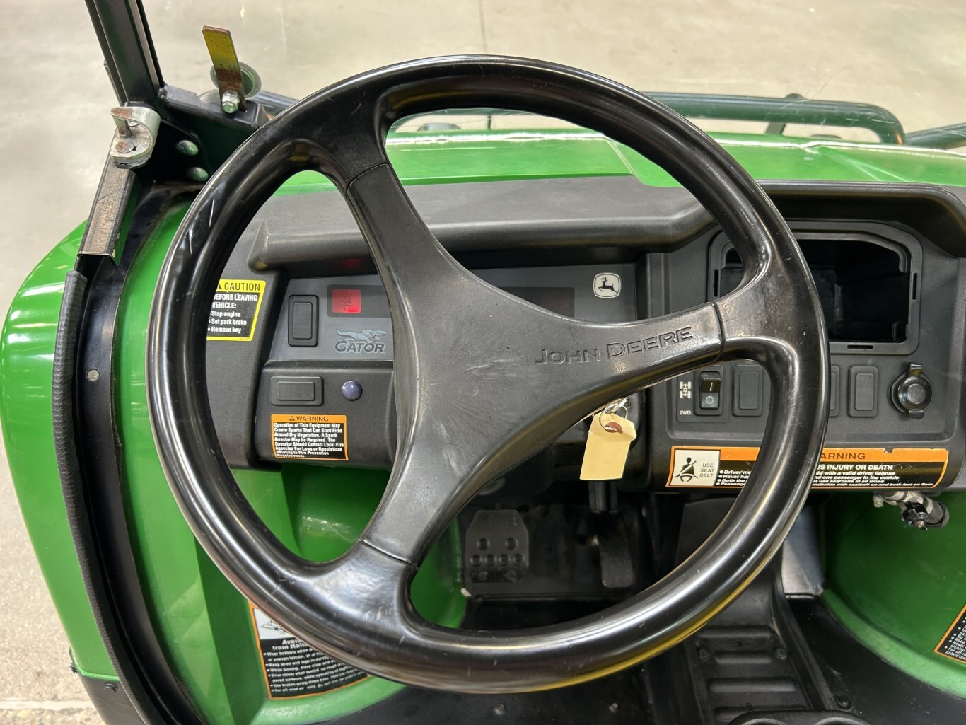 The 2010 John Deere Gator XUV?625i blends reliable power and practical utility into a rugged, two-seat side-by-side ready for work, trail, or recreation. Powered by a liquid-cooled, 617?cc V-twin engine delivering around 23?hp and 34.6?lb-ft of torque, this Gator offers smooth, EFI-driven performance that keeps pace with demanding tasks. Its Continuously Variable Transmission (CVT) includes both high and low forward ranges plus reverse, coupled with true on-demand 4WD and selectable differential locks for tailored traction across varied terrain. Robust independent double-A-arm suspension provides approximately 8?in of front travel and 9?in in back, delivering a balanced, confident ride, while precise rack-and-pinion steering and hydraulic disc brakes ensure responsive handling and control. With just over 11?in of ground clearance, this unit clears obstacles with ease. The Gator\'s durable steel frame carries a 16.4?cu?ft cargo bed—folding, removable, and ready for a heavy load, whether hauling gear or towing up to 1,500?lb. You’ll appreciate the molded plastic bed and steel floor that stand up to tough use, along with convenient tie-downs and a manual, lift-assisted tailgate for easier dumping. Inside the cabin, two comfortable vinyl bucket seats sit beneath a steel roll cage; cockpit essentials include a speedometer, fuel gauge, hour meter, and accessory power outlet for added convenience. Compact dimensions—about 119?in long, 62?in wide, and 75?in tall—plus a 79?in wheelbase make it maneuverable yet dependable, with a fully fueled weight just under 1,400?lb. Whether on the farm, job site, or trail, the 2010 Gator XUV?625i is engineered to tackle heavy payloads, rugged terrain, and long hours with John Deere durability and thoughtful design.